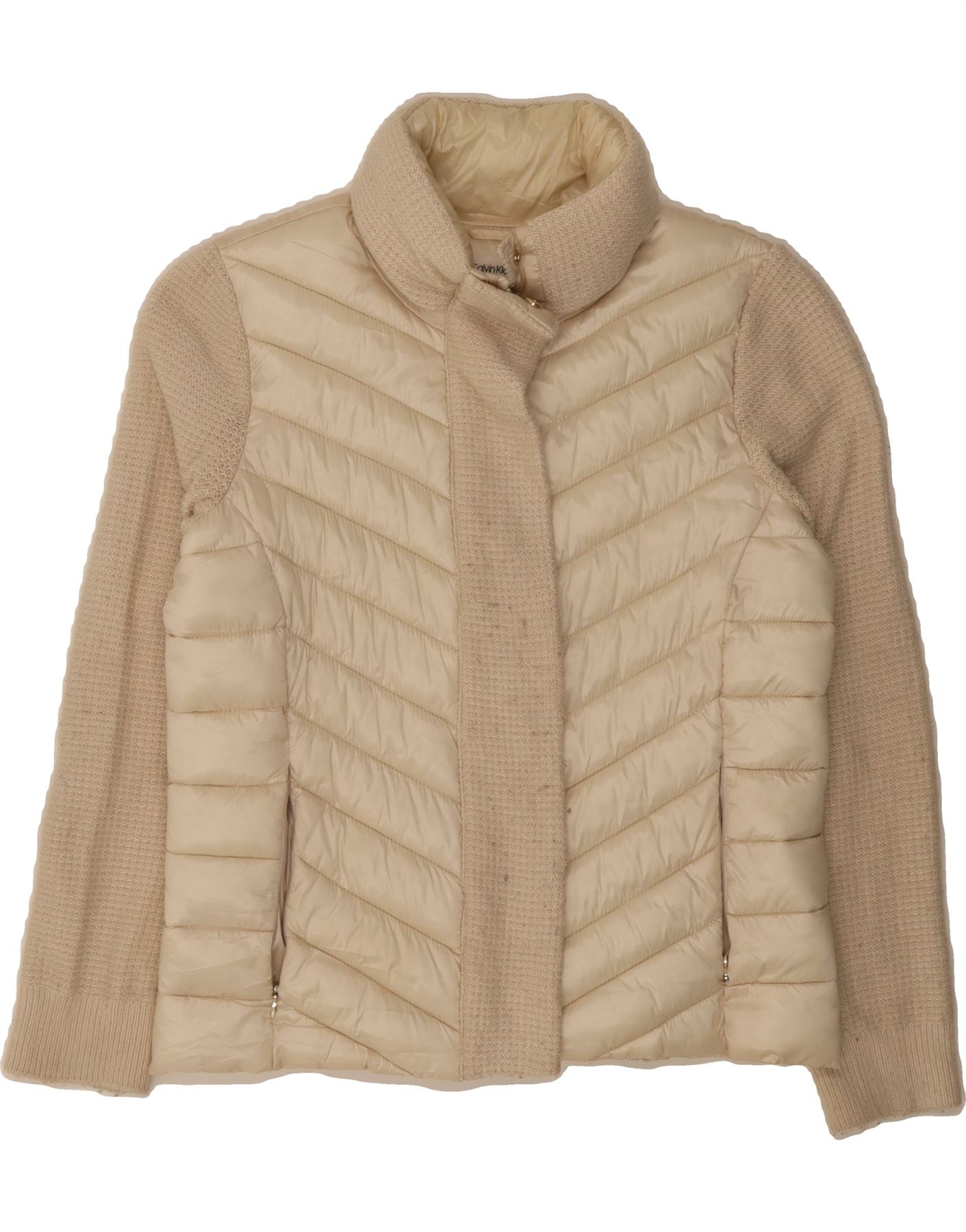 CALVIN KLEIN Womens Padded Jacket UK 14 Medium Beige Polyester