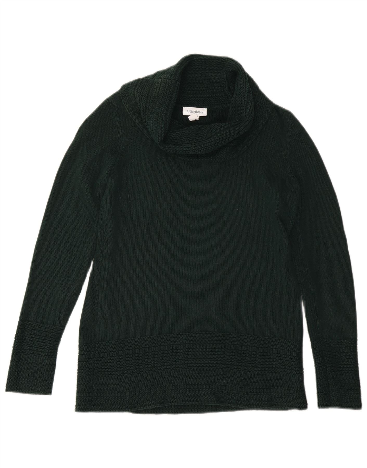 CALVIN KLEIN Dame Rullehals sweater UK 10 Lille grøn bomuld
