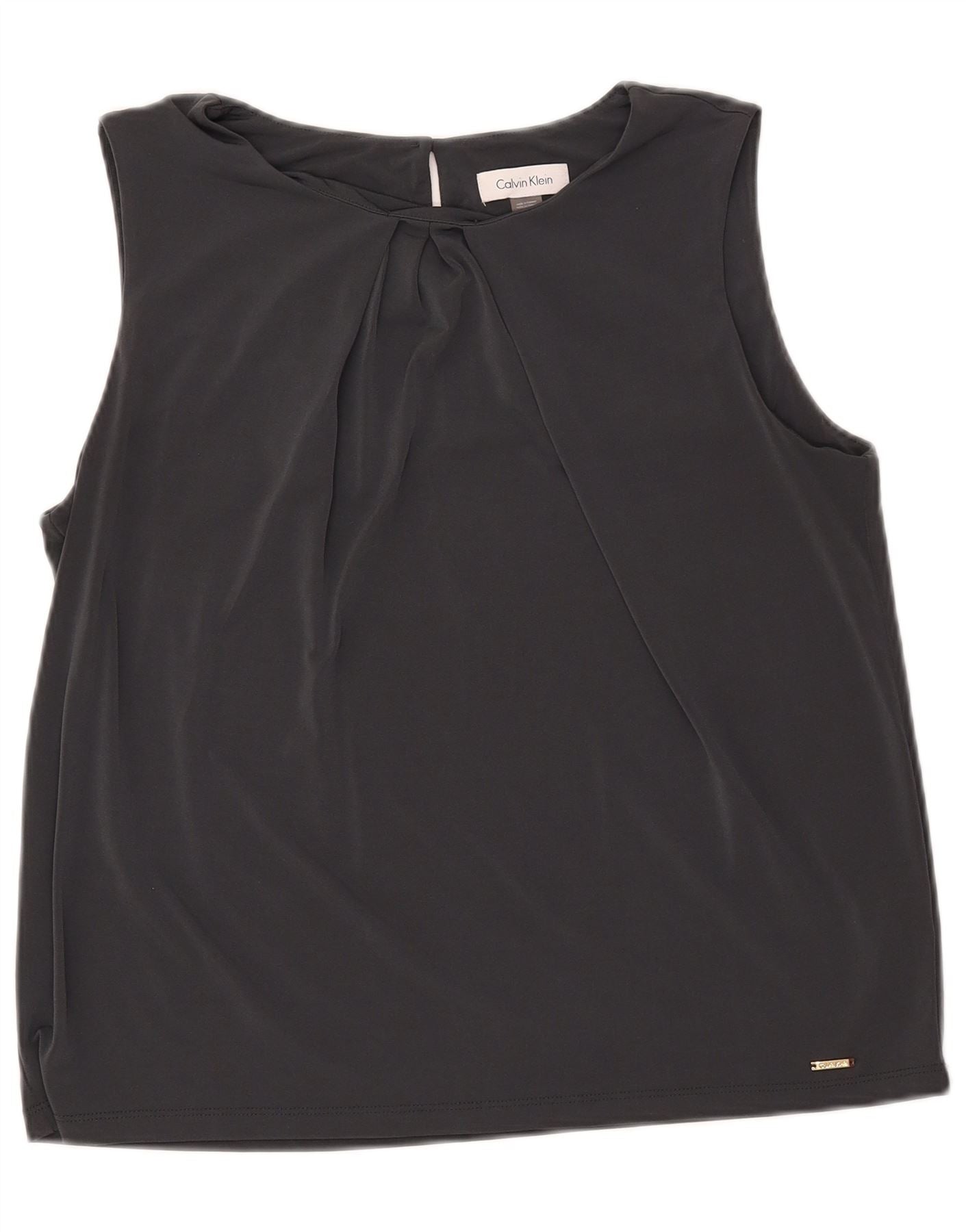 Calvin Klein Dame Ærmeløs Crop Bluse Top UK 18 XL Grå Polyester