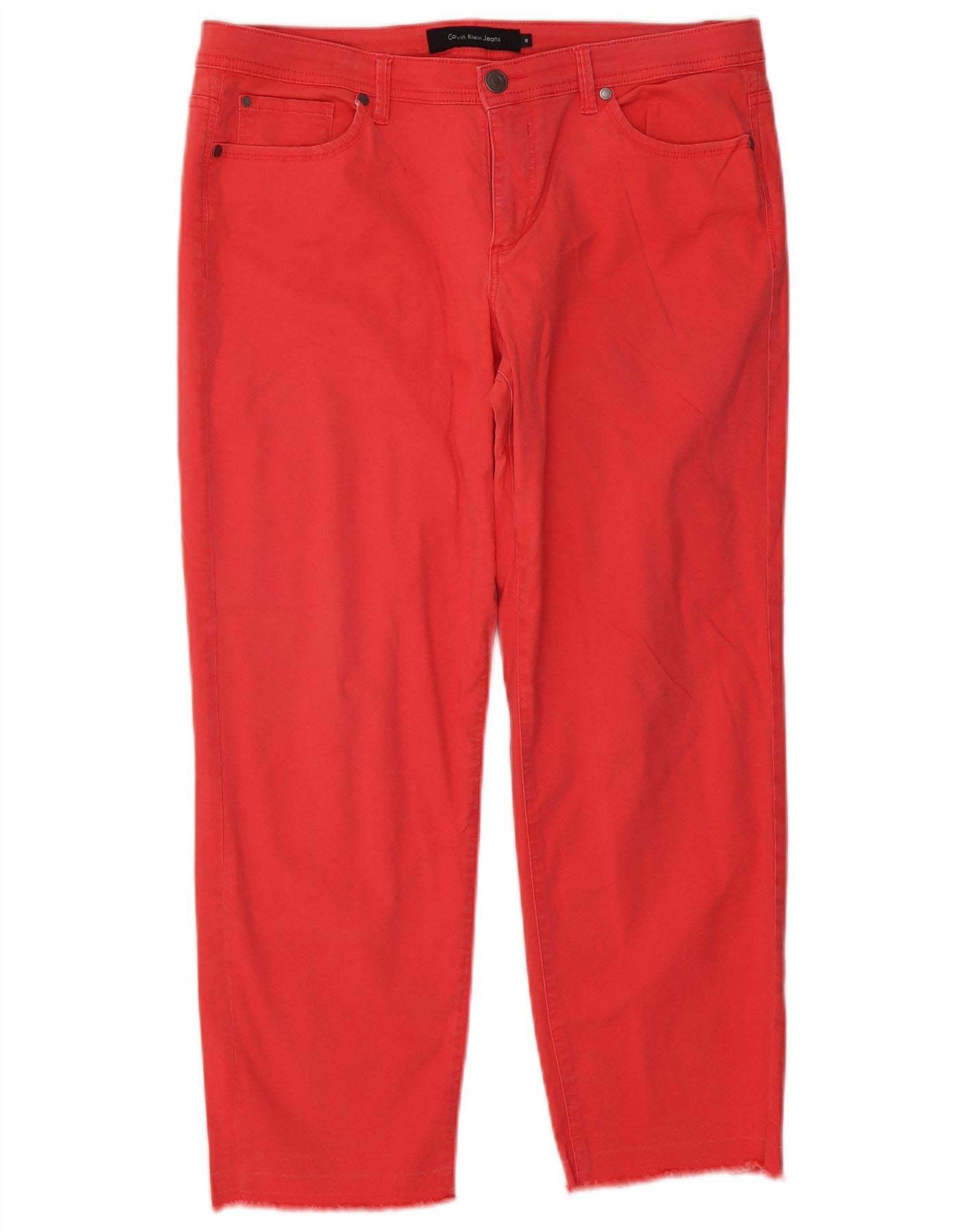 CALVIN KLEIN lige damejeans US 16 2XL W34 L27 rød bomuld