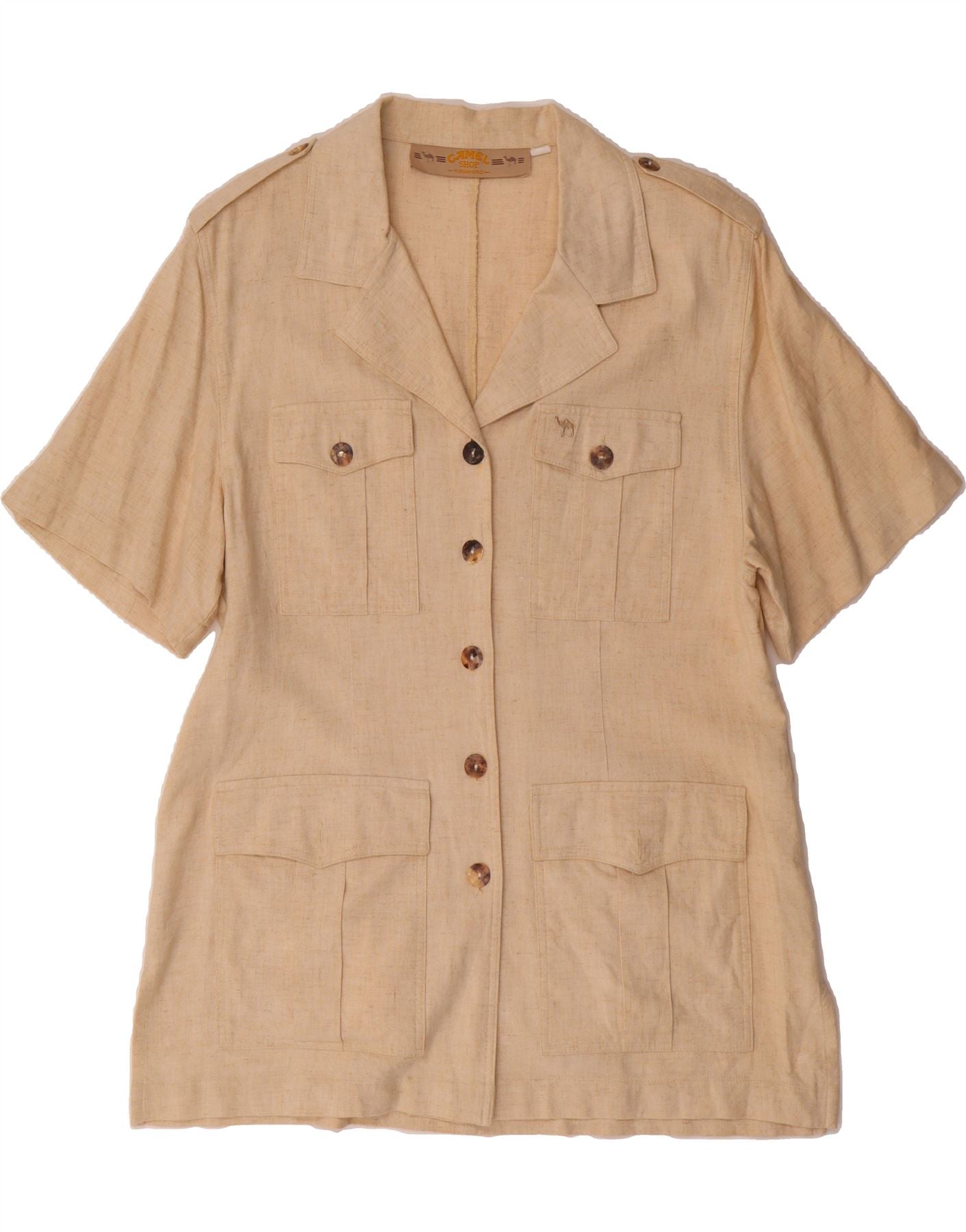 CAMEL Womens Short Sleeve Military Shirt IT 44 Medium Beige Viscose