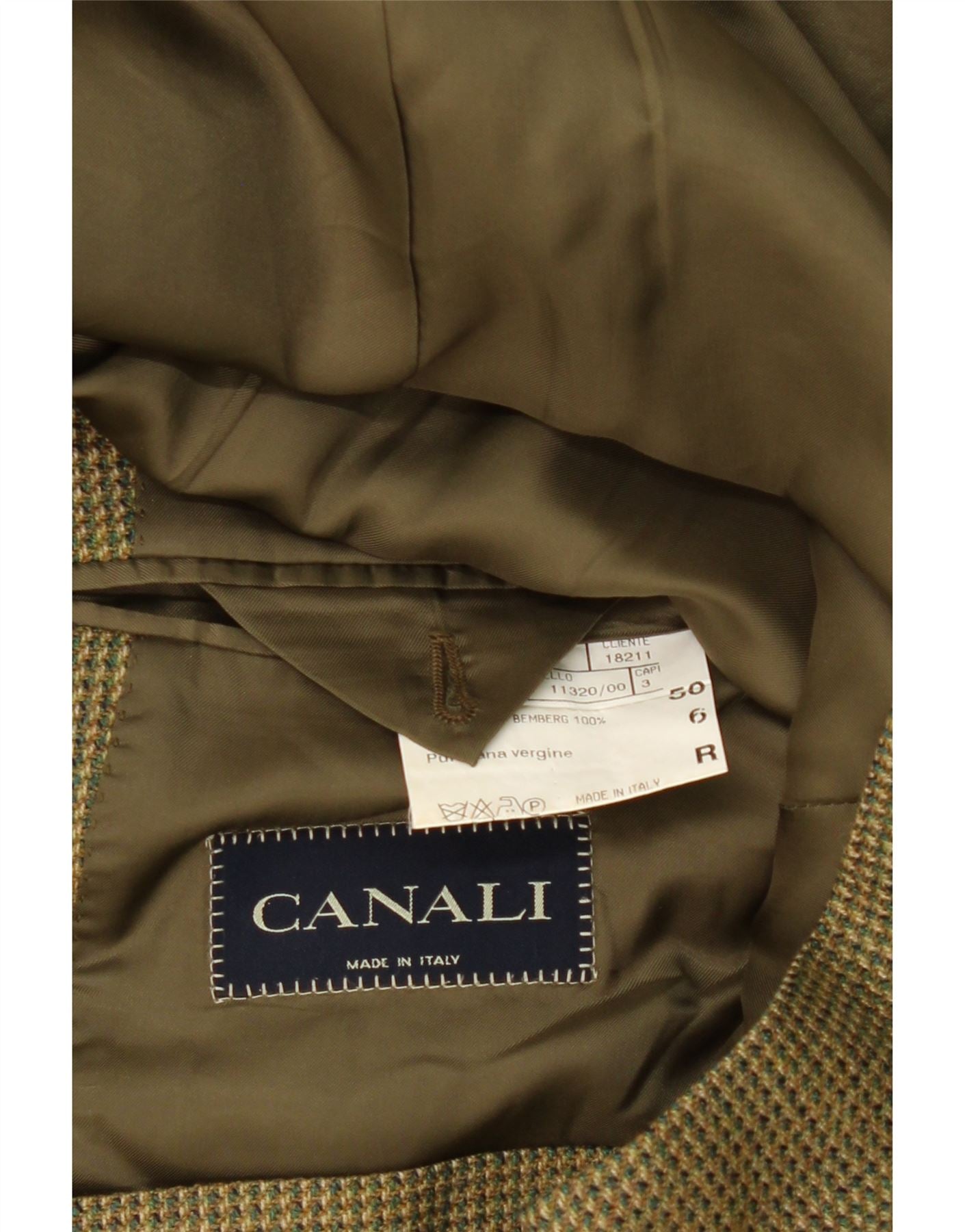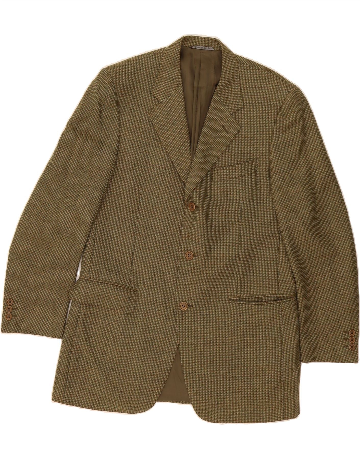 CANALI Mens 3 Button Blazer Jacket IT 50 Large Khaki Houndstooth Wool