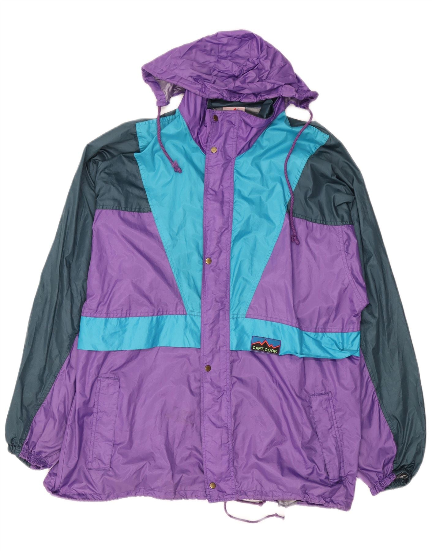 Capt. Cook Regnjakke med hætte til mænd UK 44 2XL Lilla Colourblock Retro