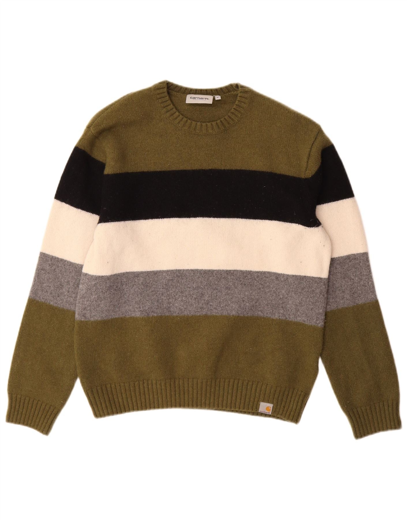 Home > Vintage Carhartt tøj > Mænds > CARHARTT Herretrøjetrøje med rund hals, medium Khaki stribet lammeuld
