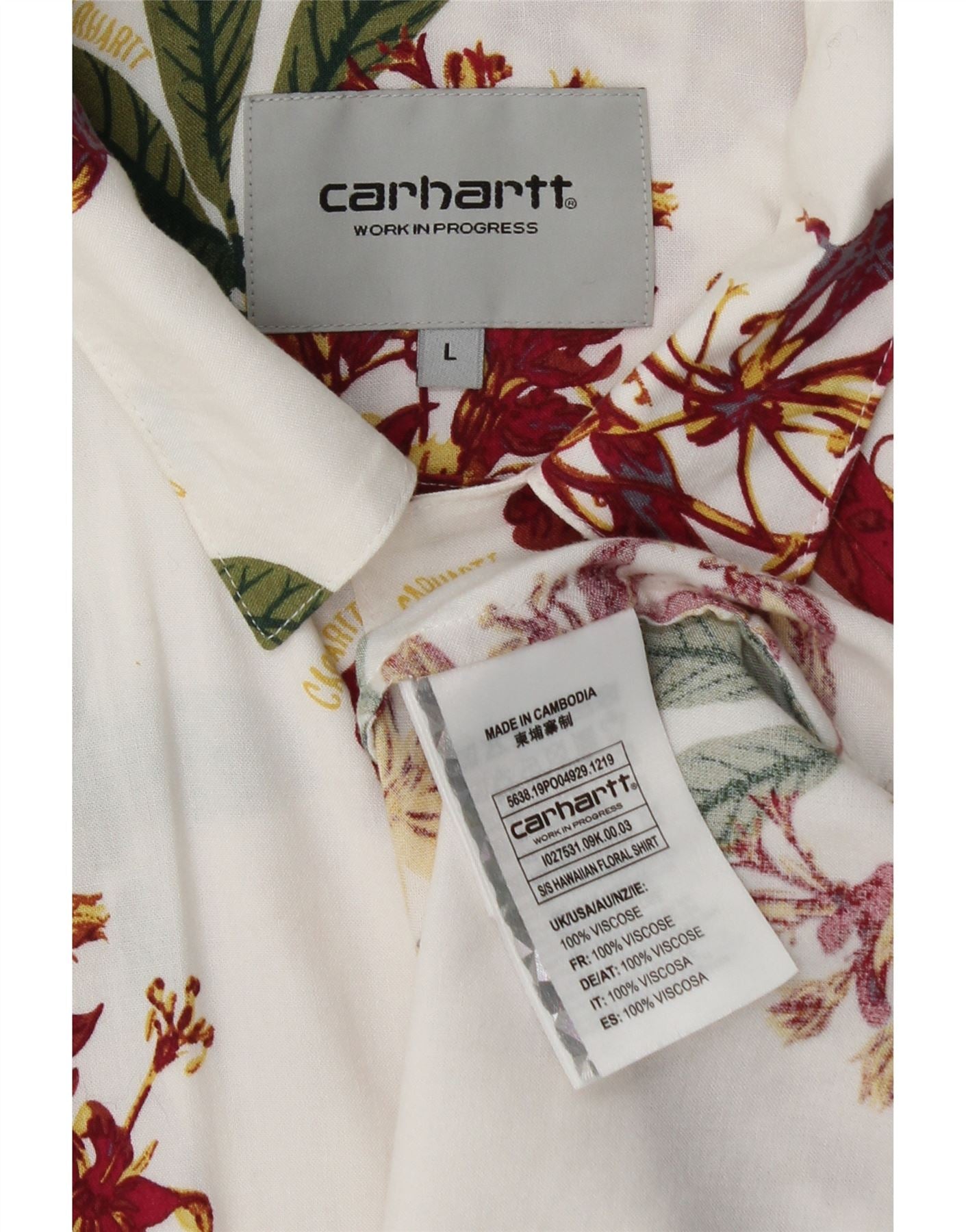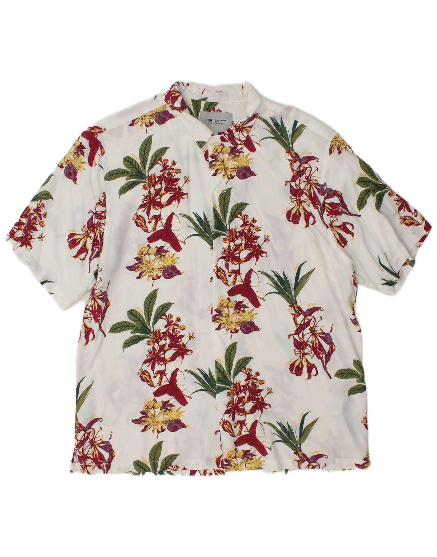 CARHARTT Herre Hawaii kortærmet skjorte Stor hvid blomsterviscose