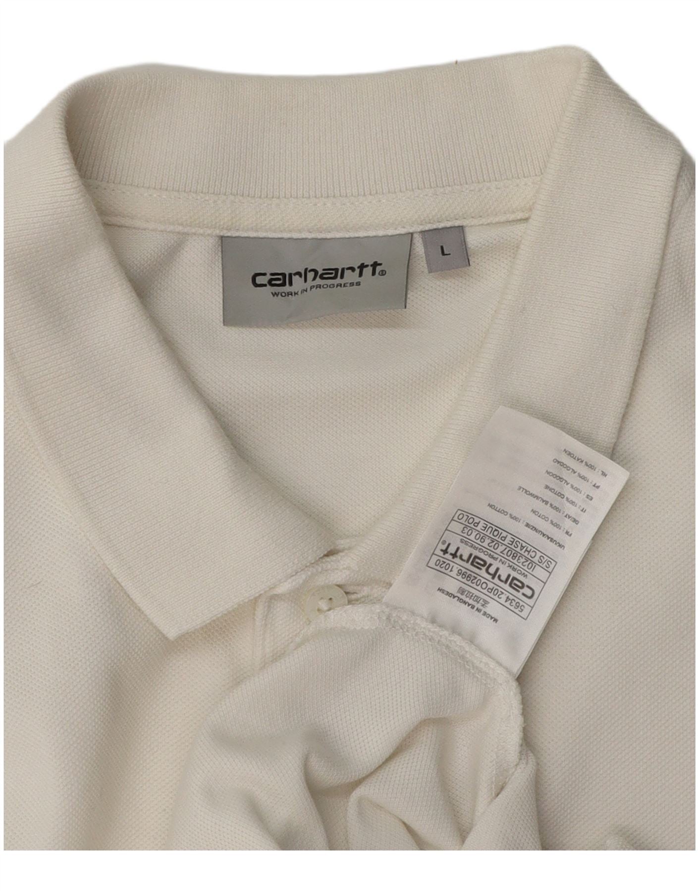 - AI beskrivelse: Denne Carhartt herre poloshirt er lavet af blødt råhvidt 100 procent bomuldsstrik. Den har en klassisk halsudskæring og en stolpe med knap. Korte ærmer og en normal pasform sikrer komfort og let bevægelse. Et subtilt broderet logo på brystet tilføjer et signaturpræg. Denne alsidige top tilbyder en smart afslappet æstetik.