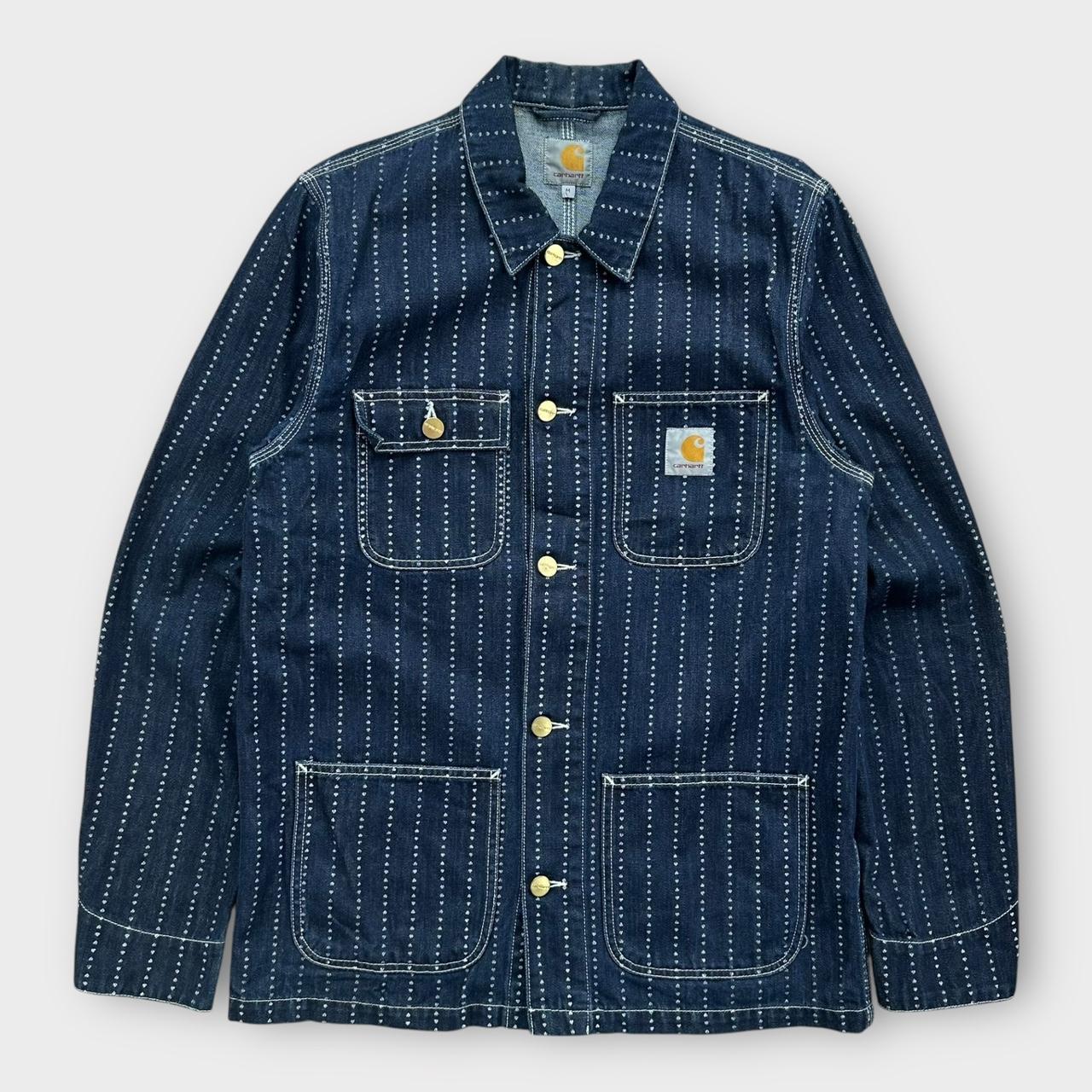 Klassisk Carhartt pin stripe Chore style jakke med 4 lommer på brystet og logo på lommen i blå denim