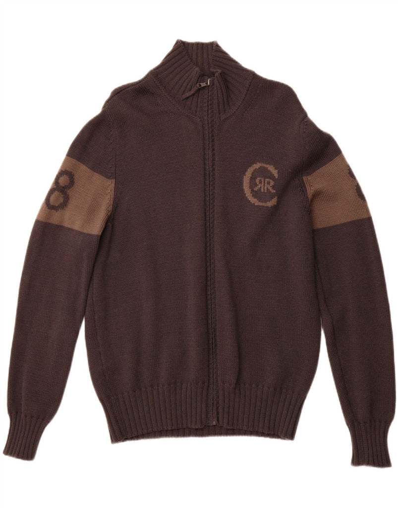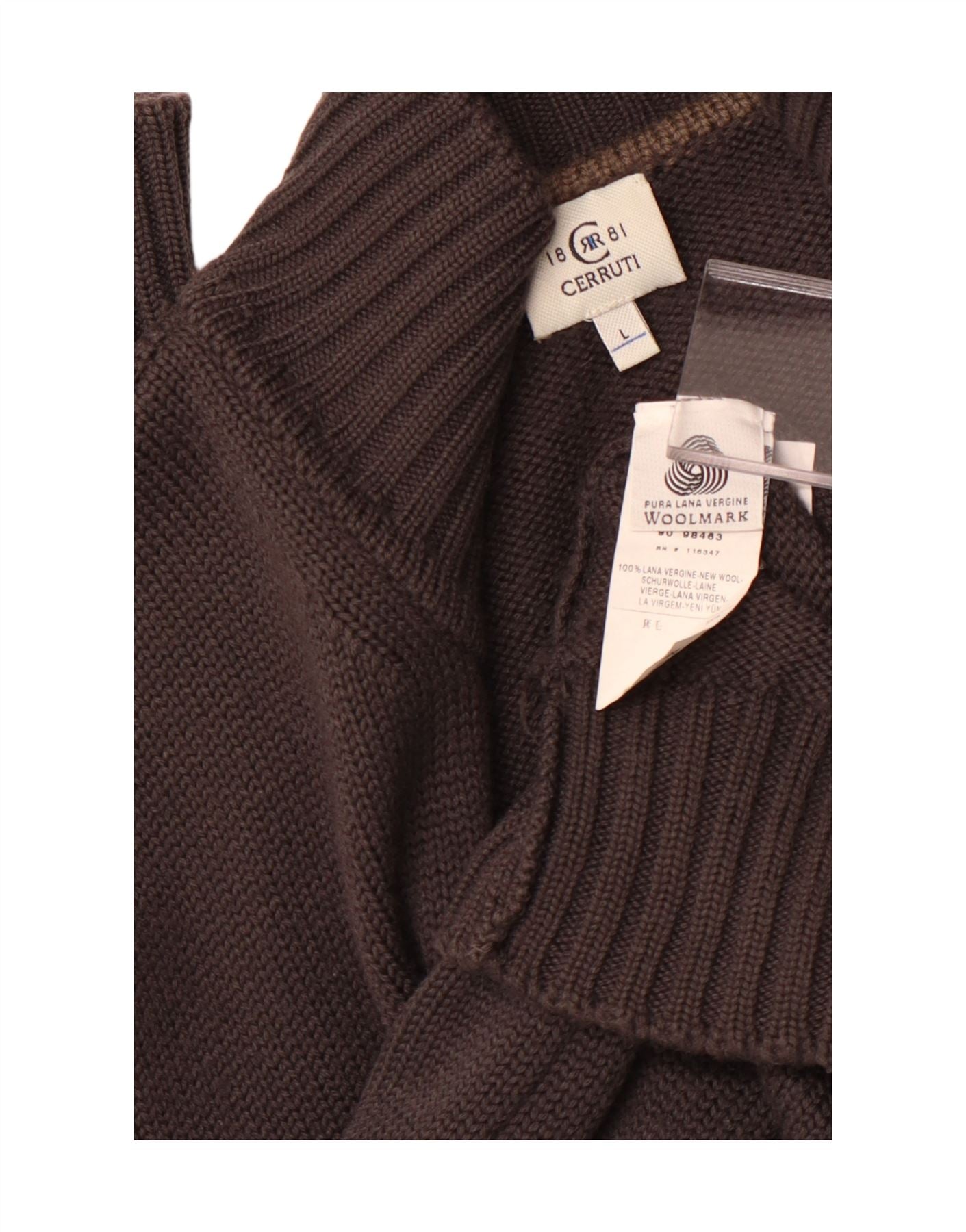 CERRUTI 1881 Herre grafisk cardigan sweater Stor grå farveblok Ny uld