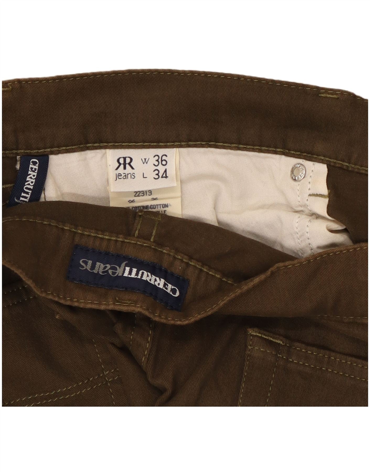 CERRUTI 1881 Mens Straight Casual Trousers W36 L32 Khaki Cotton