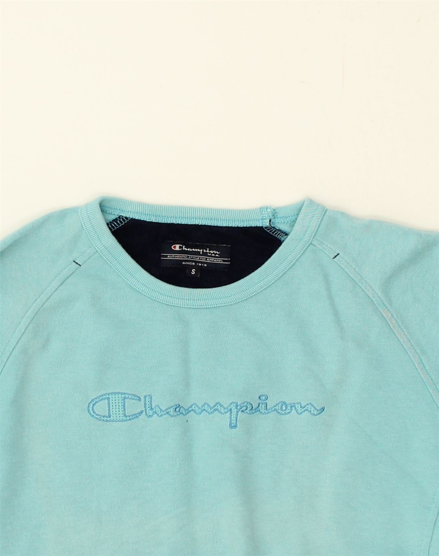 Home > Vintage Champion tøj > Kvinders > Sweatshirts > CHAMPION Dame Grafisk Sweatshirt Jumper UK 10 Lille blå bomuld