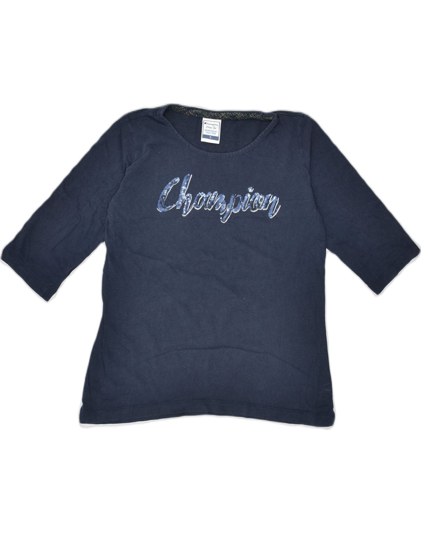 CHAMPION Dame grafisk top 3/4 ærme UK 10 Lille marineblå bomuld