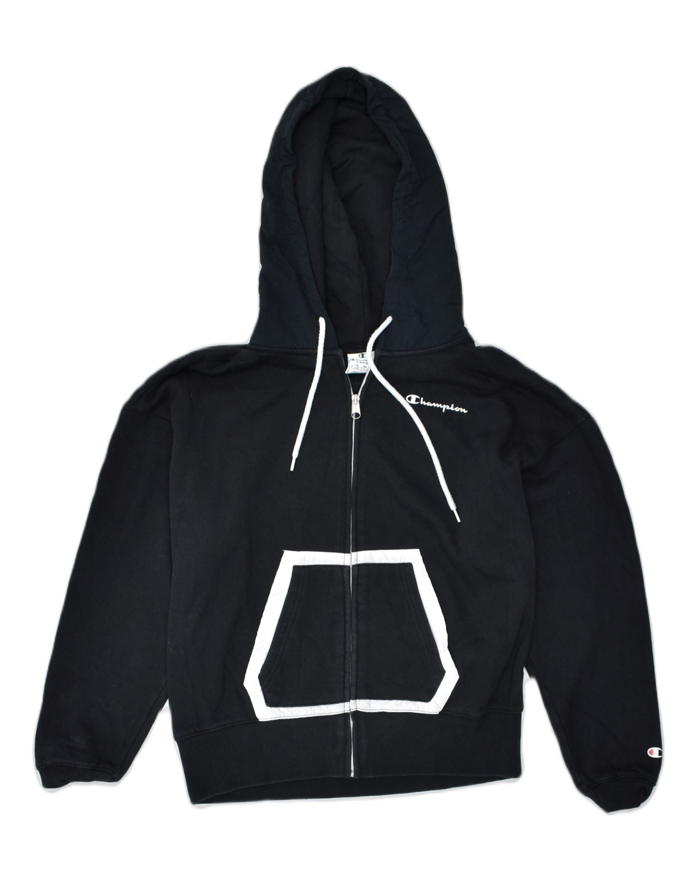 CHAMPION Dame Hættetrøje Sweater UK 14 Stor Sort Bomuld