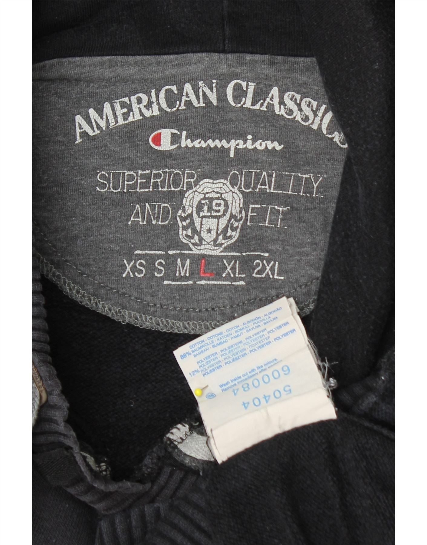 Home > Vintage Champion tøj > Mænds > Hættetrøje > CHAMPION Grafisk hættetrøje til mænd Stor sort bomuld