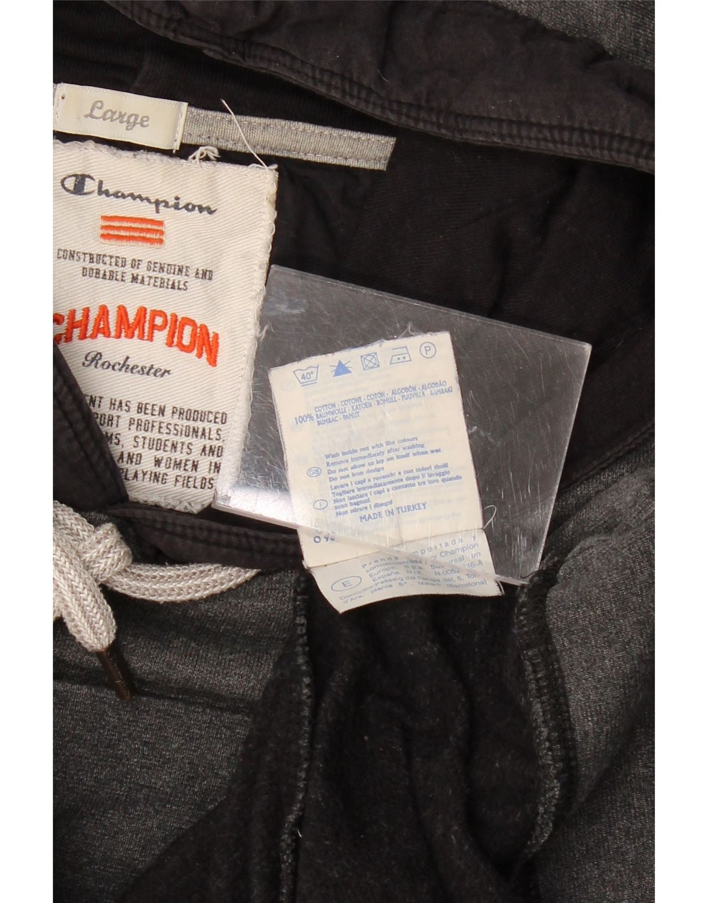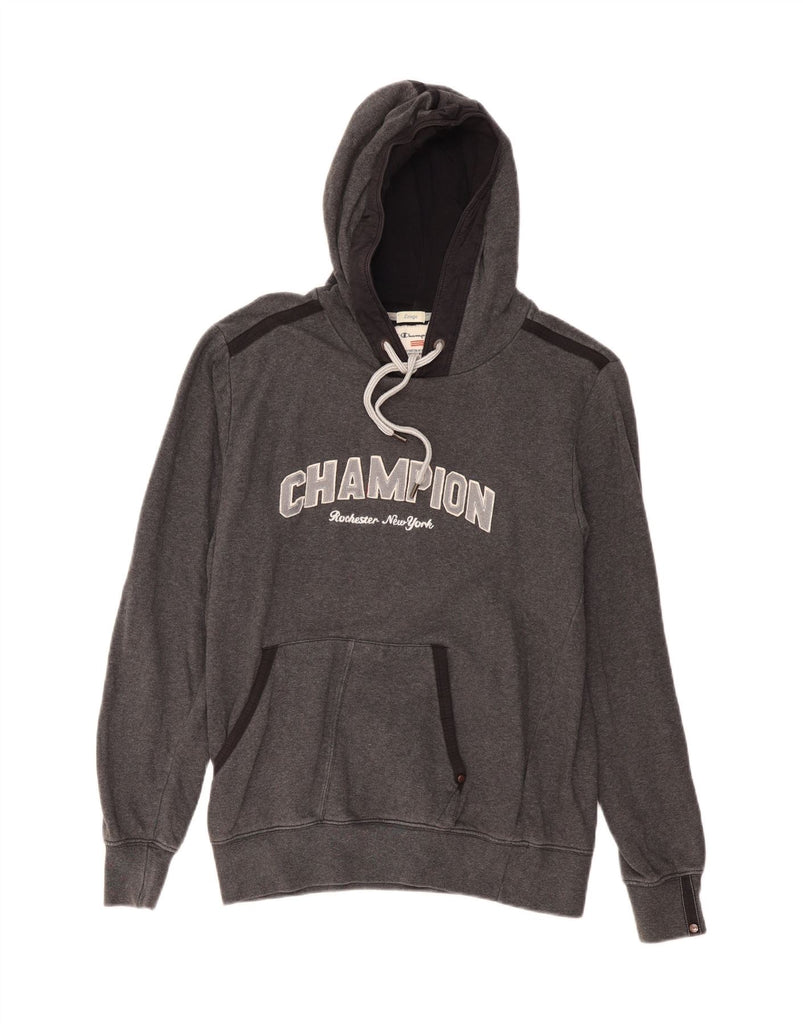 CHAMPION Mens Graphic Hoodie Jumper Large Grey Colourblock Cotton
