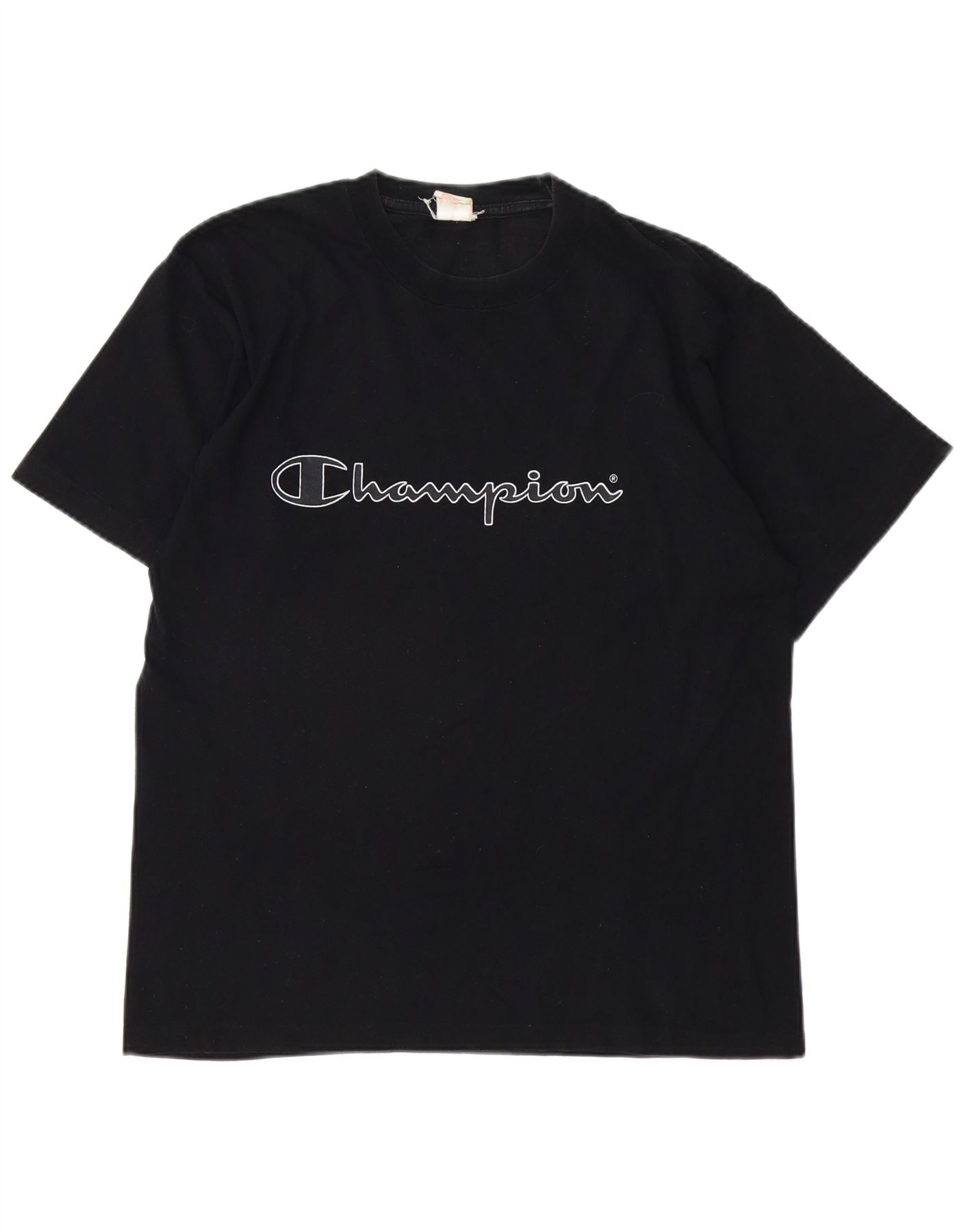Home > Vintage Champion tøj > Mænds > T-shirts > CHAMPION Herre grafisk T-shirt Top Medium Sort Bomuld