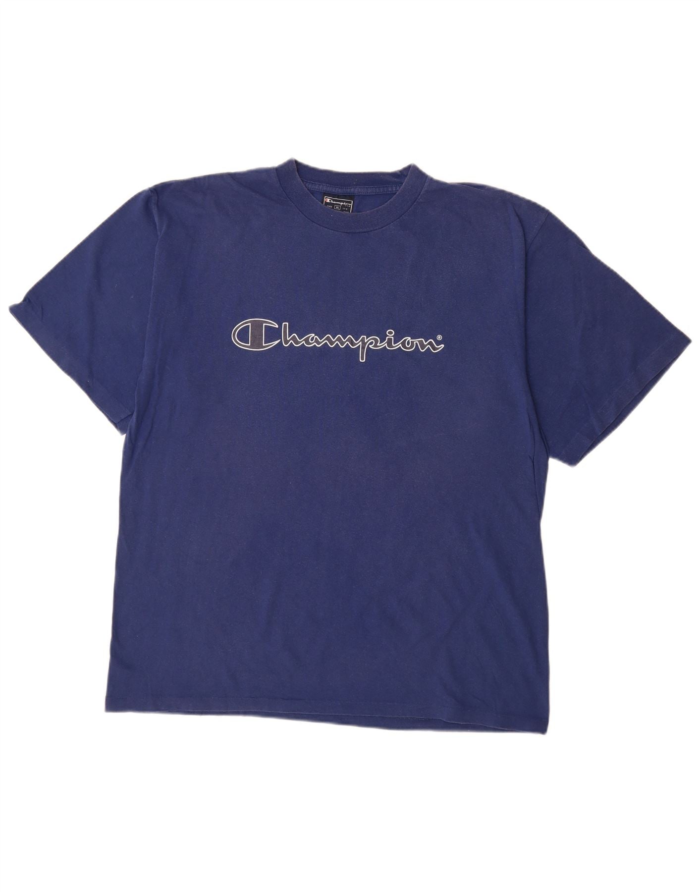 Home > Vintage Champion tøj > Mænds > T-shirts > CHAMPION Herre grafisk T-shirt top XL marineblå bomuld