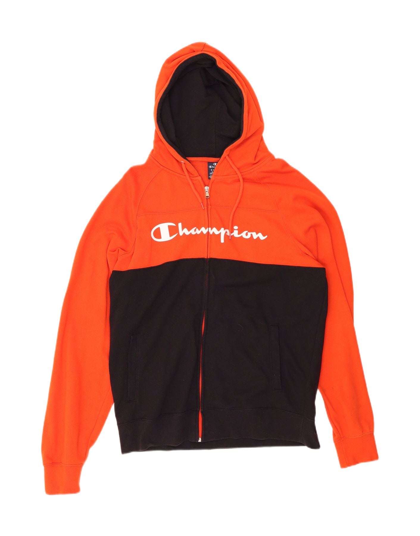 CHAMPION Herre grafisk hættetrøje med lynlås XL Orange Colourblock Bomuld