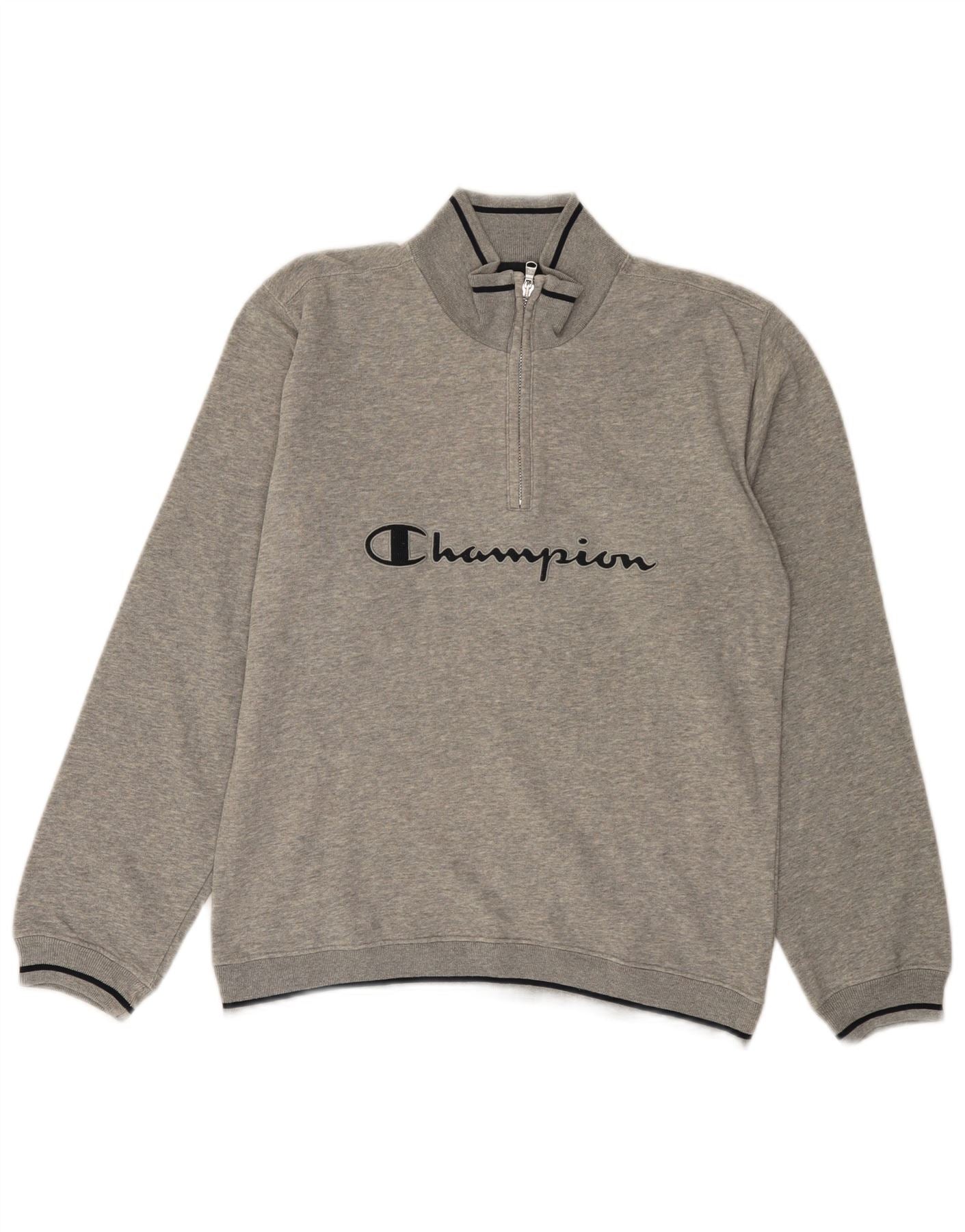 Home > Vintage Champion tøj > Mænds > Sweatshirts > CHAMPION Herre Grafisk Zip Neck Sweatshirt Jumper lille grå bomuld