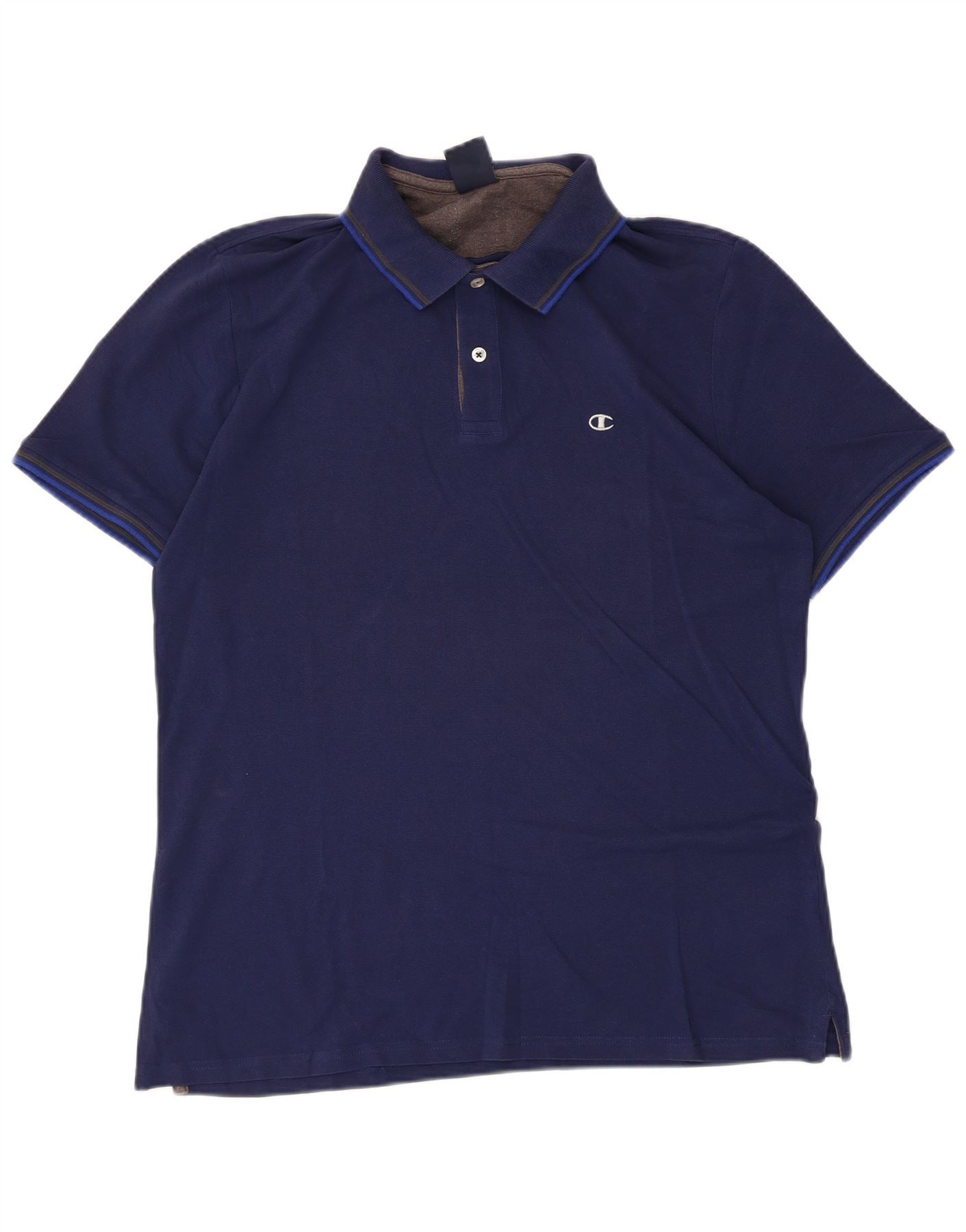Home > Vintage Champion tøj > Mænds > Polo skjorter > CHAMPION Poloshirt til mænd Stor marineblå bomuld