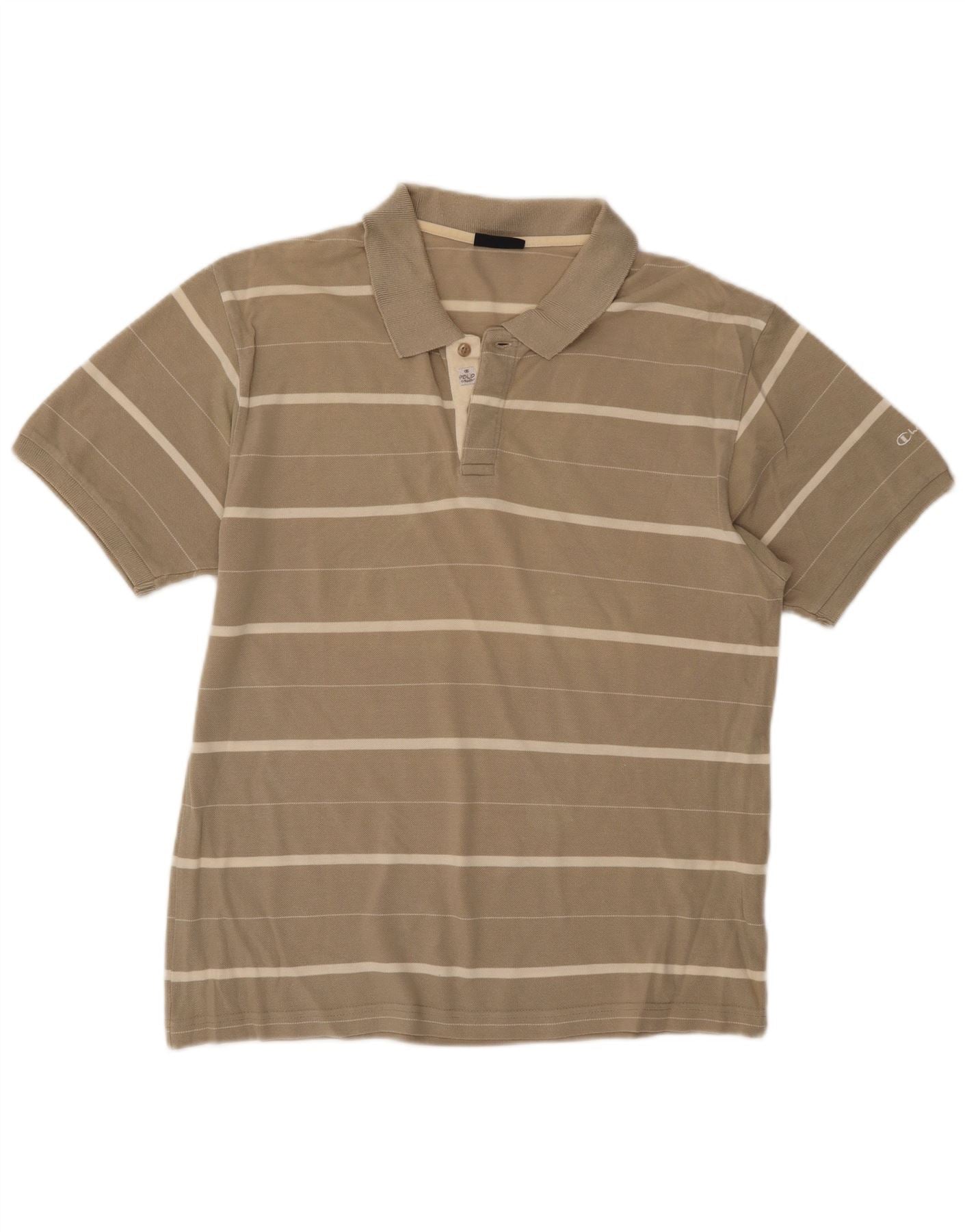 Home > Vintage Champion tøj > Mænds > Polo skjorter > Champion herre poloshirt Medium beige stribet bomuld