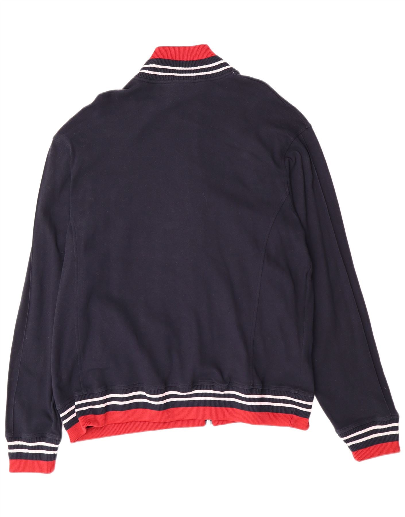 - AI beskrivelse: Denne Champion træningsjakke til mænd er lavet af blød marineblå 100 procent bomuldsjersey. Den har en halsudskæring med røde og hvide striber. Lange ærmer og en normal pasform sikrer komfort. En fuld lynlås lukning løber ned foran. De ribbede manchetter og søm kan også prale af matchende røde og hvide striber. To praktiske lommer medfølger. Et subtilt Champion-logo tilføjer et signaturpræg.