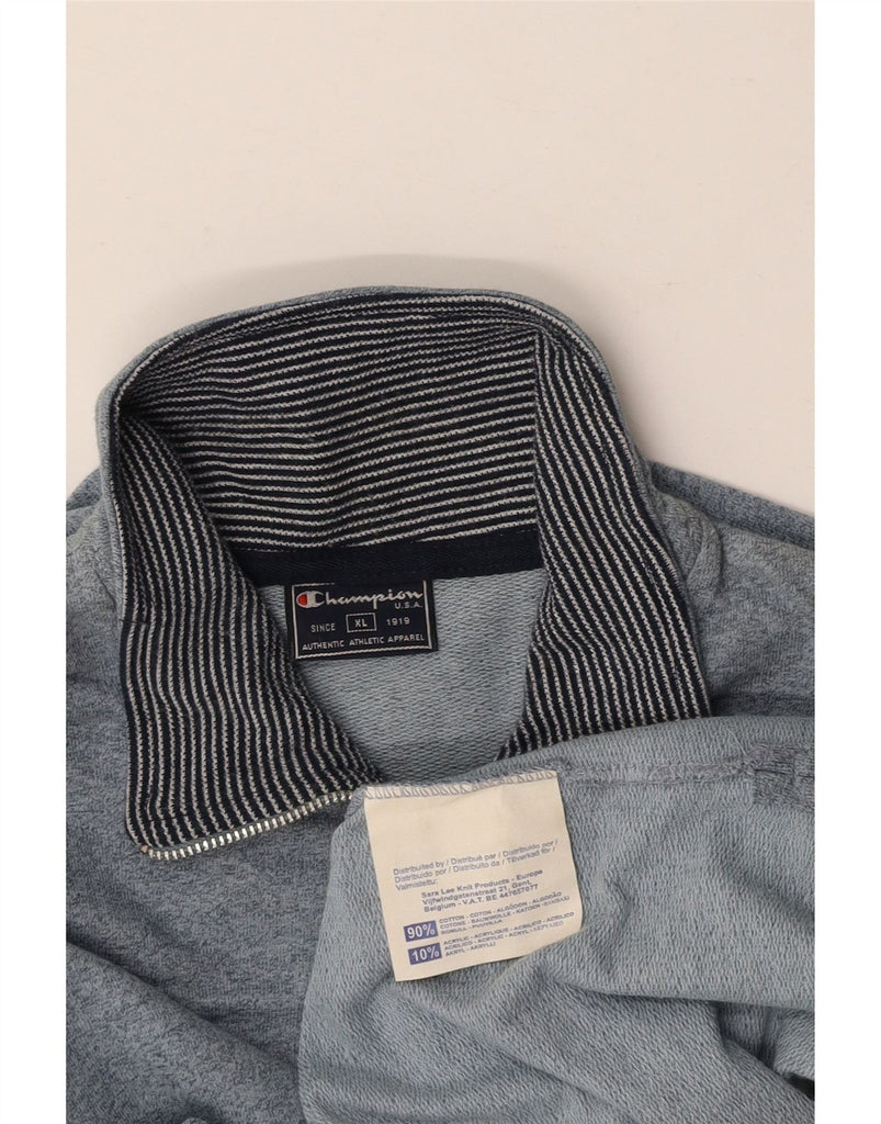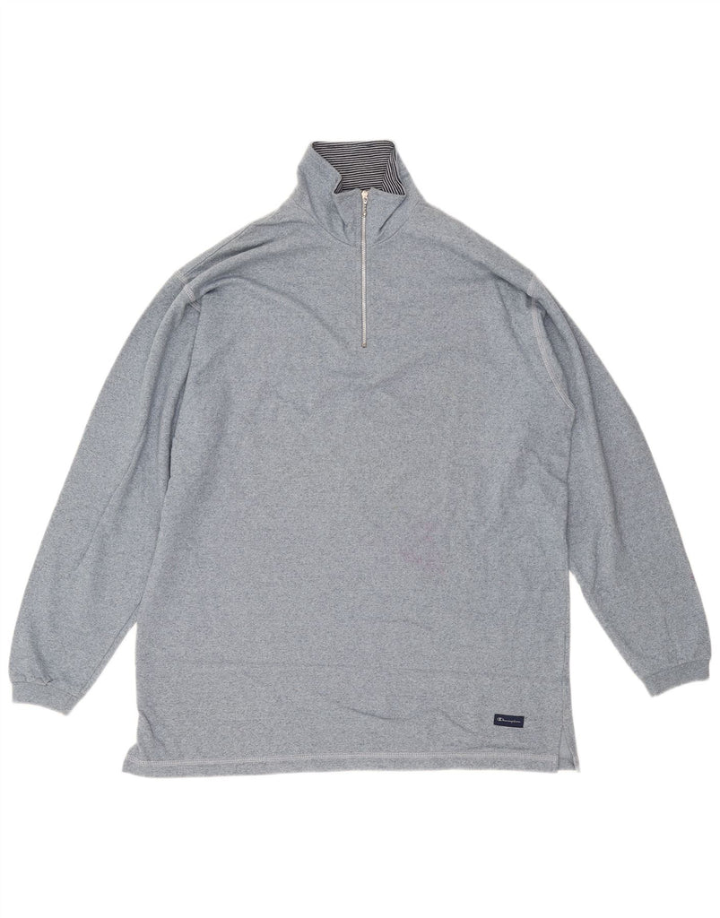 CHAMPION Mens Zip Neck Sweatshirt Jumper XL Blue Flecked Cotton