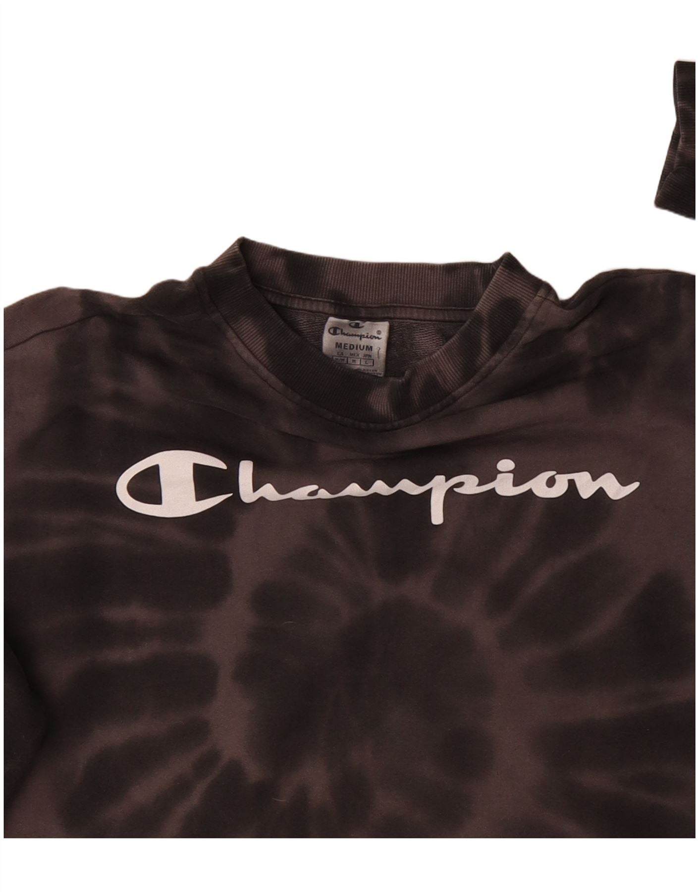 Home > Vintage Champion tøj > Kvinders > Sweatshirts > CHAMPION Womens Crop Graphic Sweatshirt Jumper UK 14 Medium Brown Tie Dye