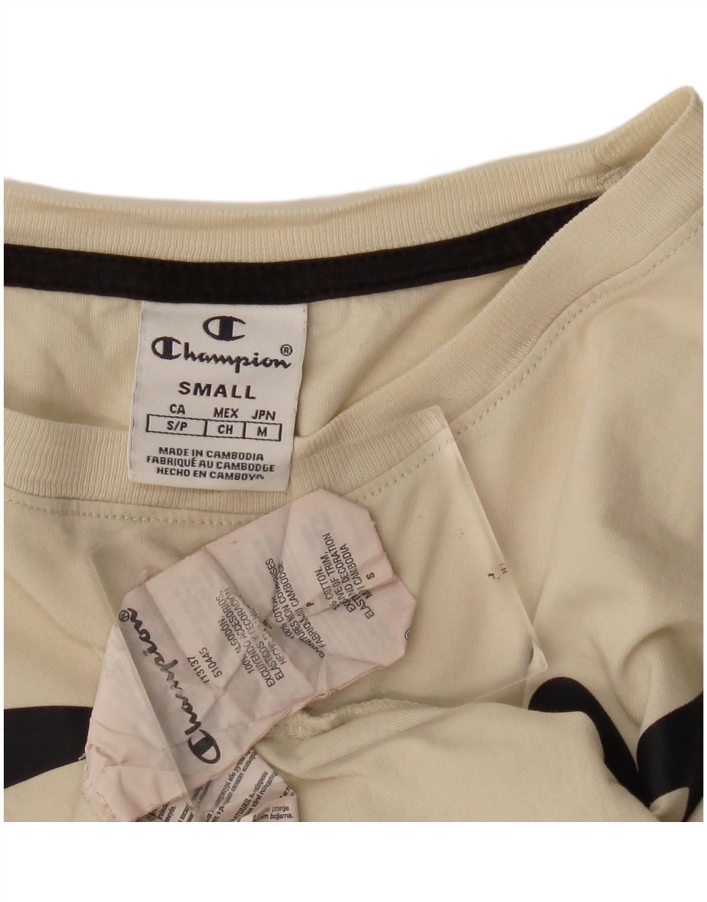 Home > Vintage Champion tøj > Kvinders > T-shirts > CHAMPION Womens Crop Oversized grafisk T-shirt top UK 10 Small Beige