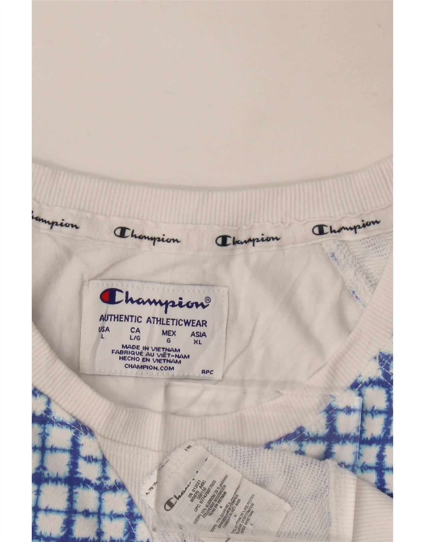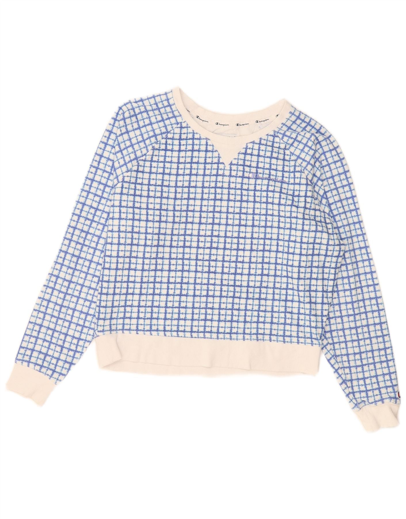 CHAMPION Womens Crop Sweatshirt Jumper UK 16 Large Blue Check Cotton