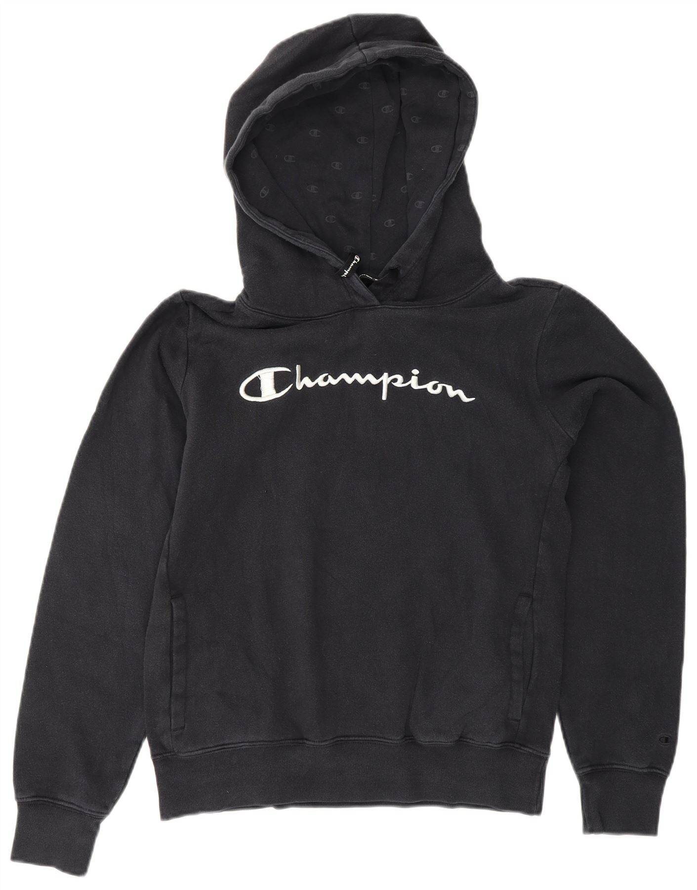 Home > Vintage Champion tøj > Kvinders > Hættetrøje > CHAMPION Grafisk hættetrøje til kvinder UK 12 Mellem marineblå bomuld