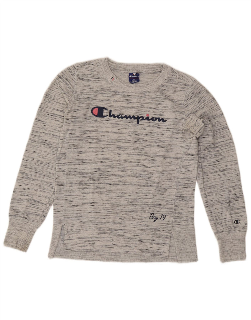 CHAMPION Womens Graphic Sweatshirt Jumper UK 10 Small Grey Flecked