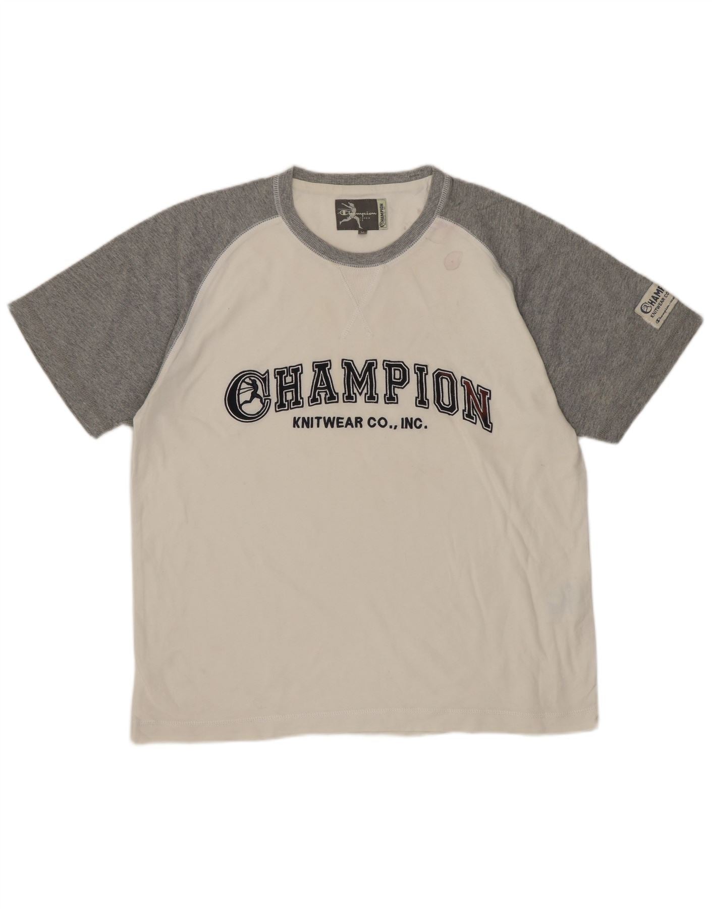 Champion Dame Grafisk T-Shirt Top UK 14 Medium White Colourblock Bomuld