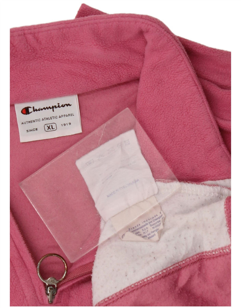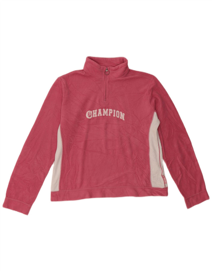 CHAMPION Womens Graphic Zip Neck Fleece Jumper UK 18 XL Pink Colourblock