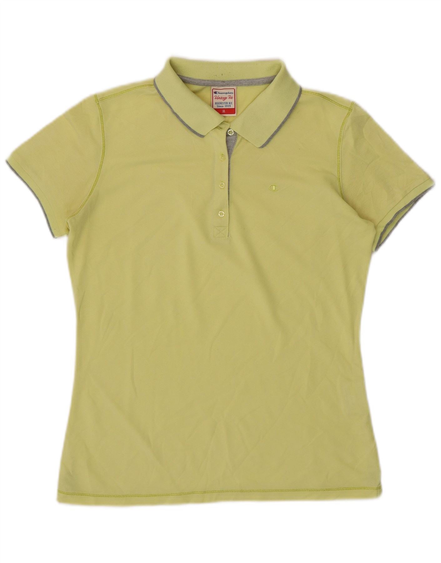 CHAMPION Womens Heritage Fit Polo Shirt UK 12 Medium Green Cotton