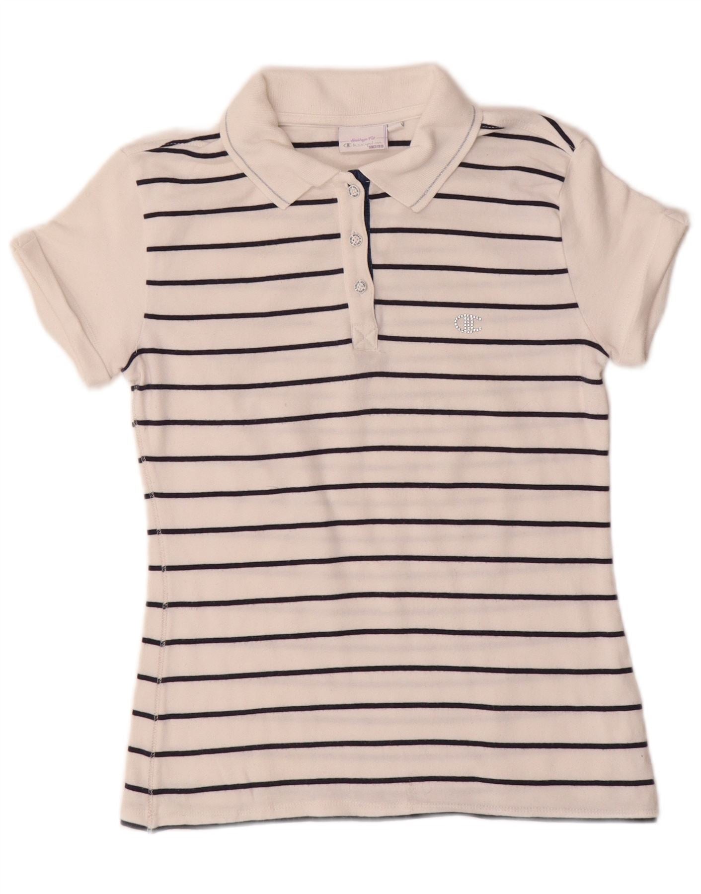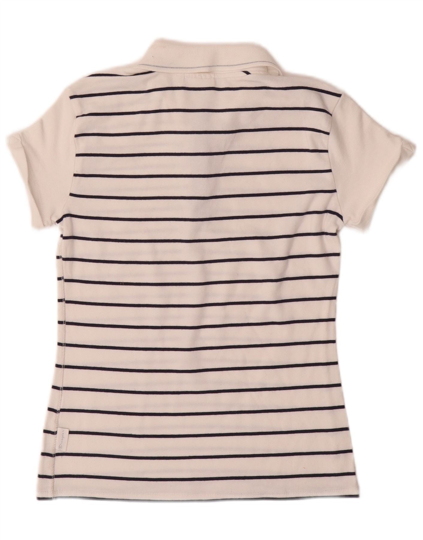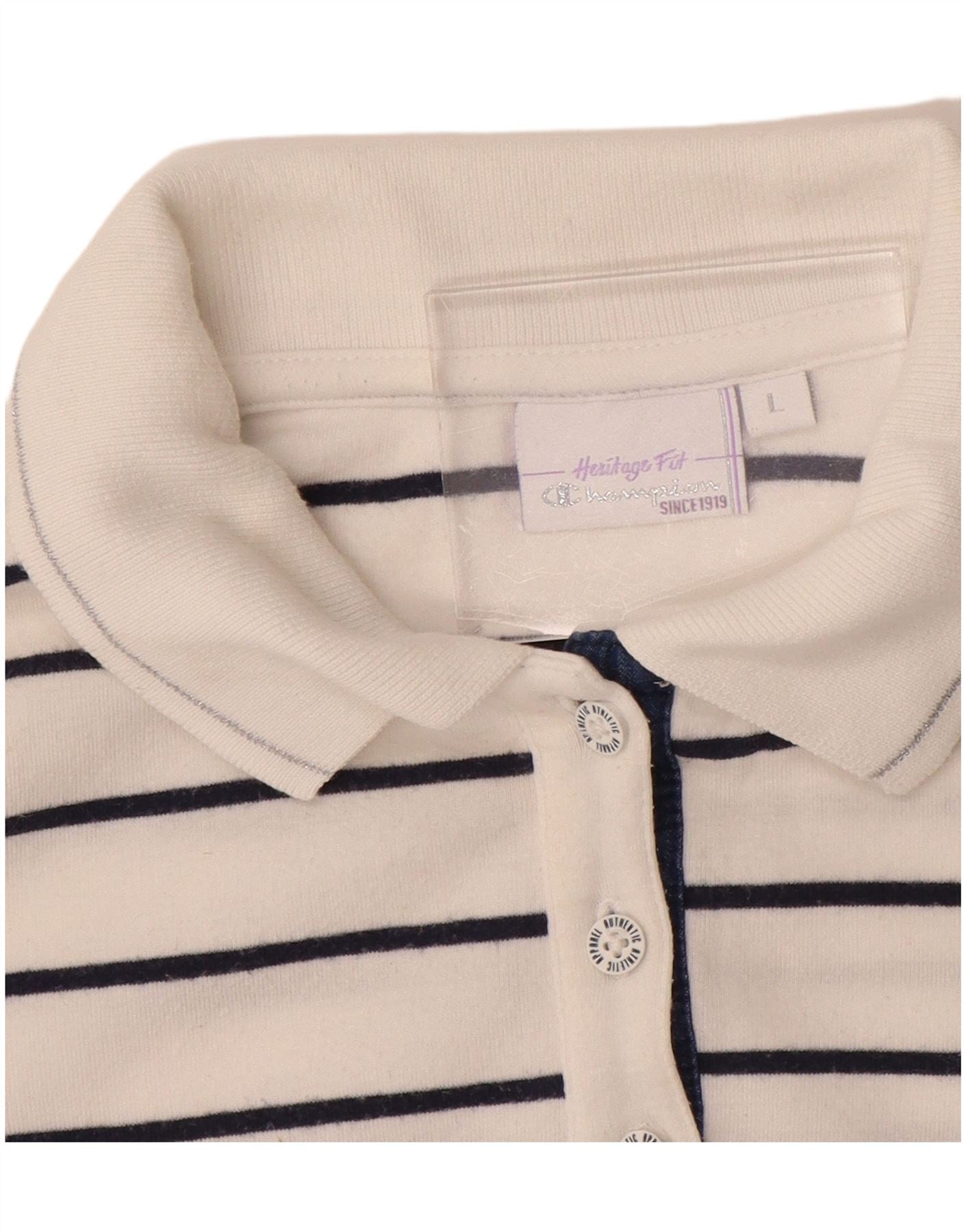 CHAMPION Womens Heritage Fit Polo Shirt UK 14 Stor hvid stribet