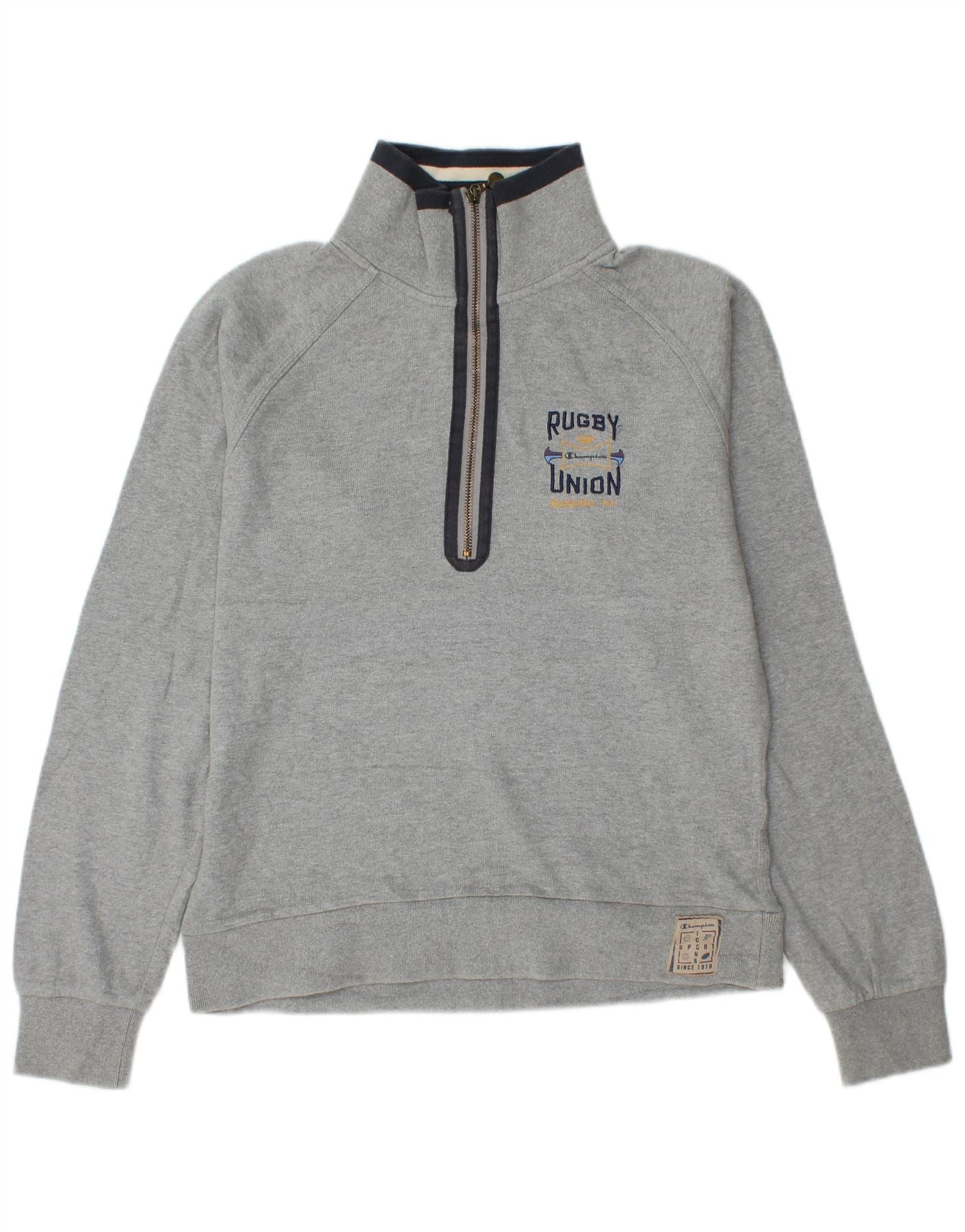 Champion Womens Muscle Graphic Zip Neck Sweatshirt Jumper UK 14 Medium Grey