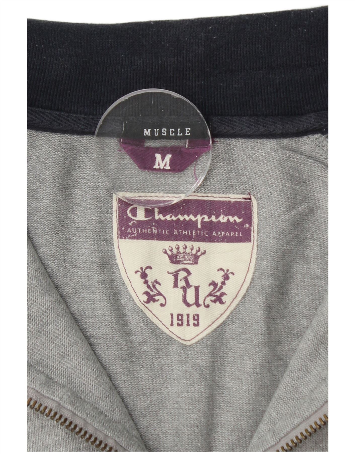 Home > Vintage Champion tøj > Kvinders > Sweatshirts > Champion Womens Muscle Graphic Zip Neck Sweatshirt Jumper UK 14 Medium Grey