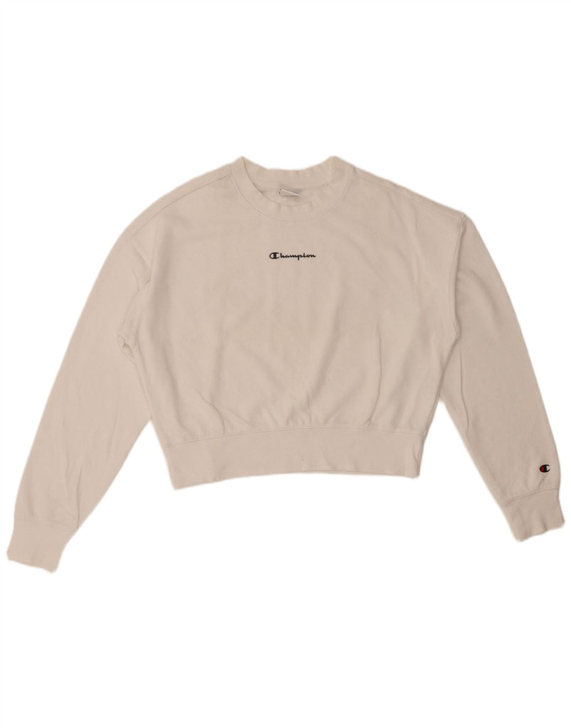 CHAMPION Womens Oversized Crop Sweatshirt Jumper UK 14 Medium White Cotton