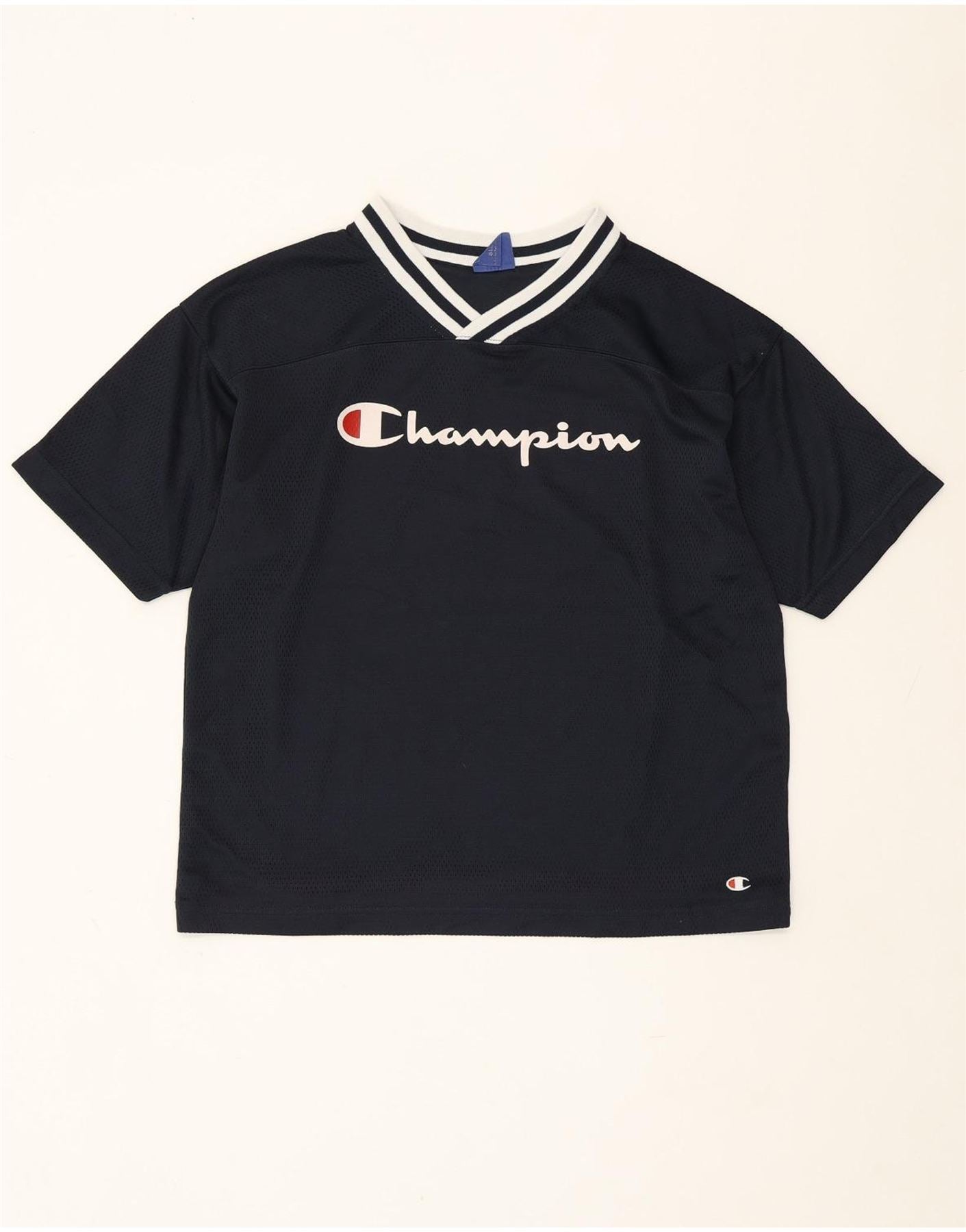 Home > Vintage Champion tøj > Kvinders > T-shirts > CHAMPION Dame Oversized grafisk T-shirt Top UK 10 Small Navy Blue