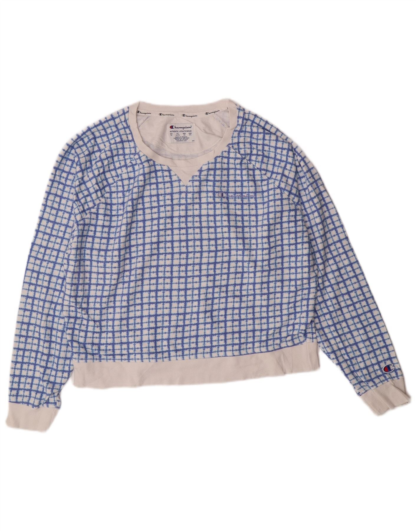 Champion Dame Sweatshirt Jumper UK 18 XL blå ternet bomuld