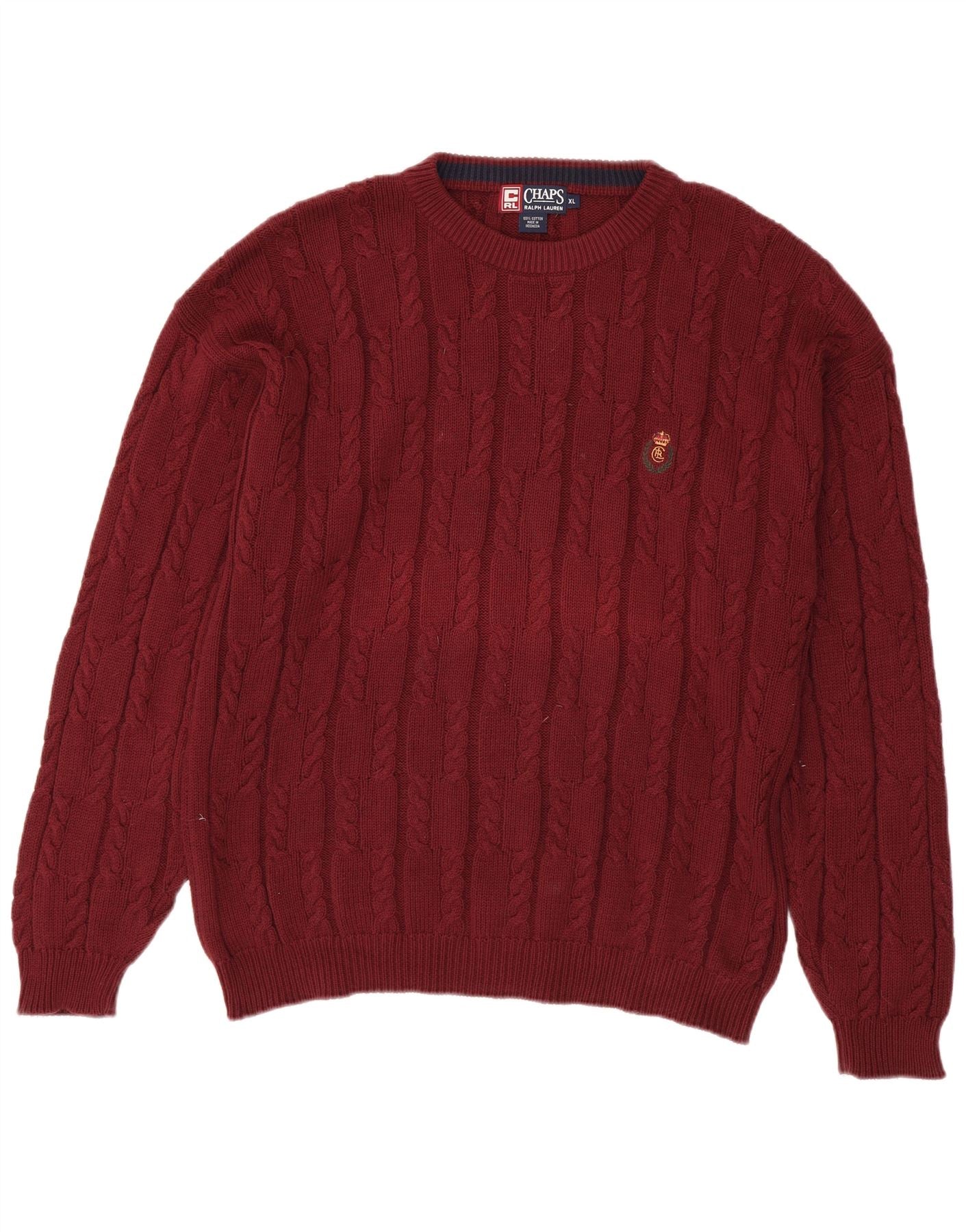 CHAPS RALPH LAUREN Herre Crew Neck Jumper Sweater XL Bourgogne bomuld