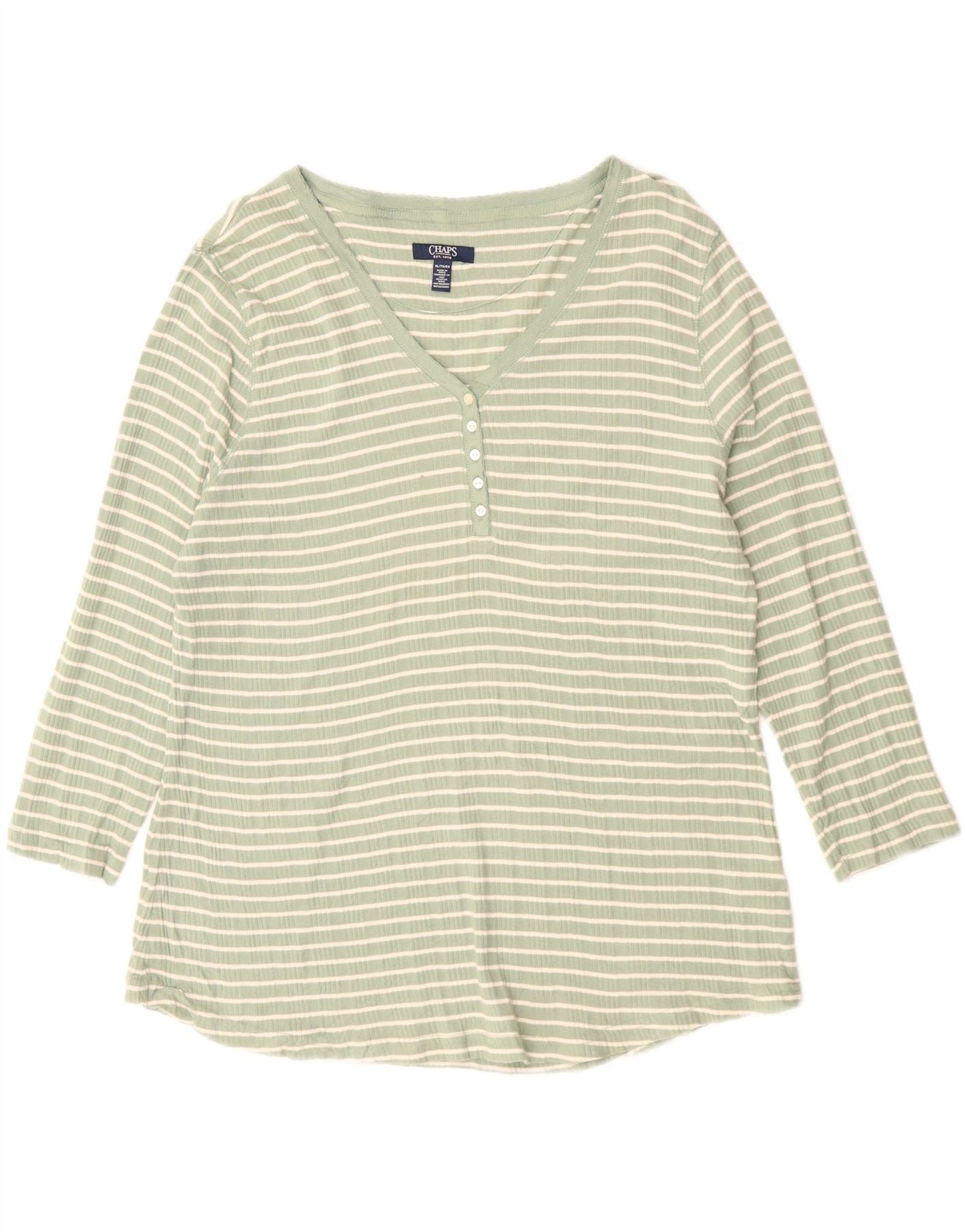 Chaps Dame Top 3/4 ærmer UK 18 XL Grøn Stribet Bomuld