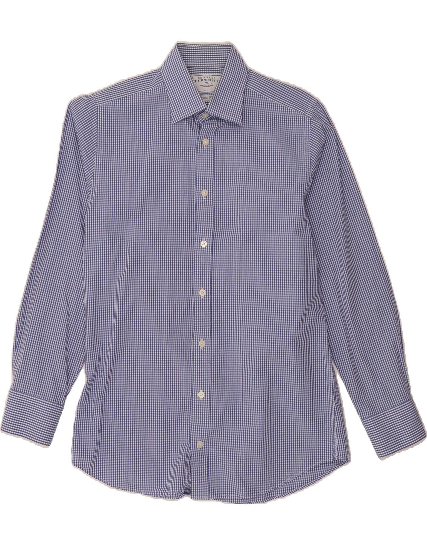 CHARLES TYRWHITT Mens Slim Fit Shirt Size 15 38 Medium Blue Gingham Cotton