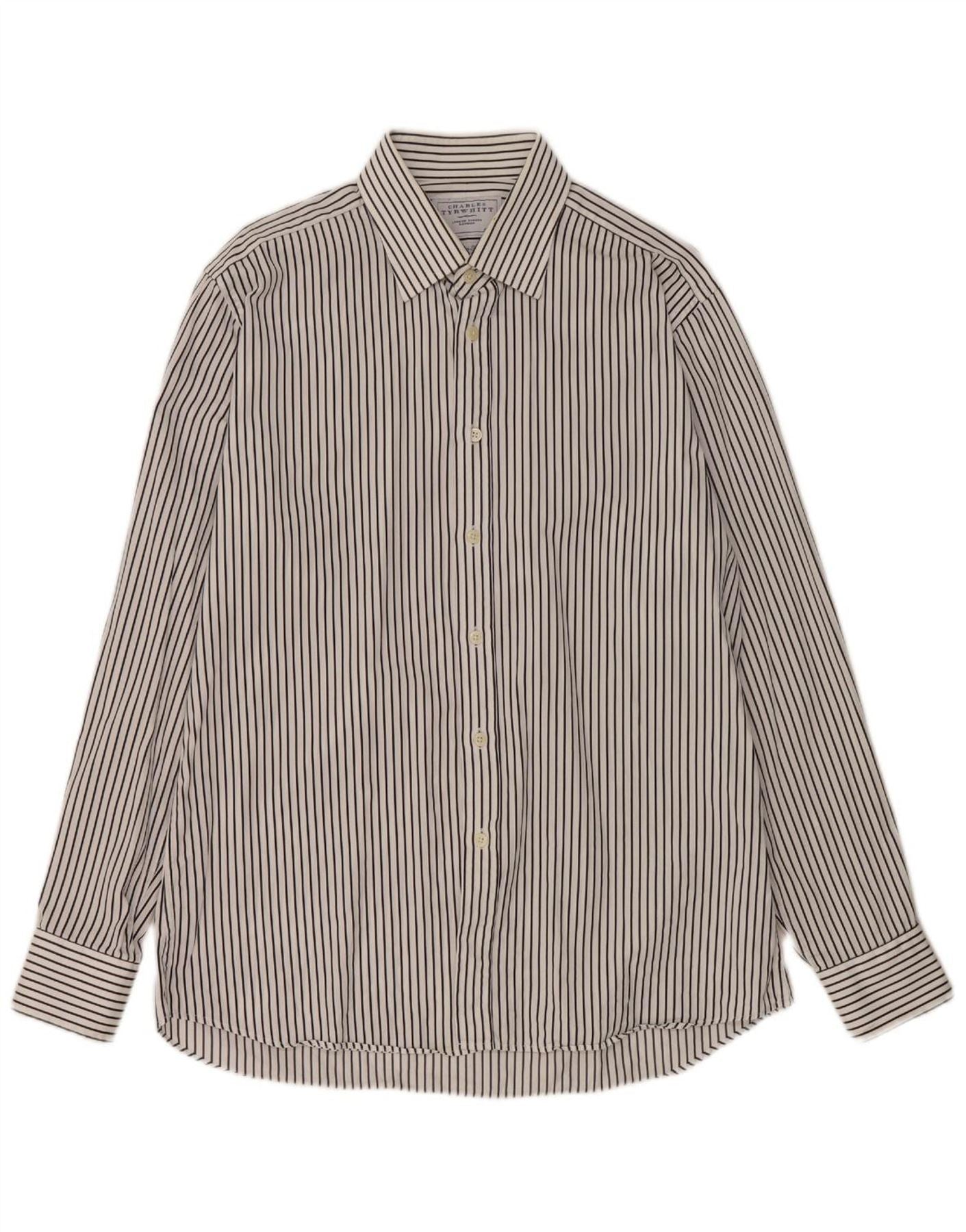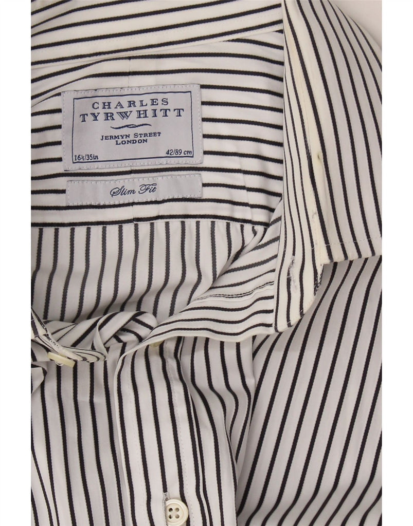 CHARLES TYRWHITT Mens Slim Fit Shirt Size 16 1/2 Large White Pinstripe