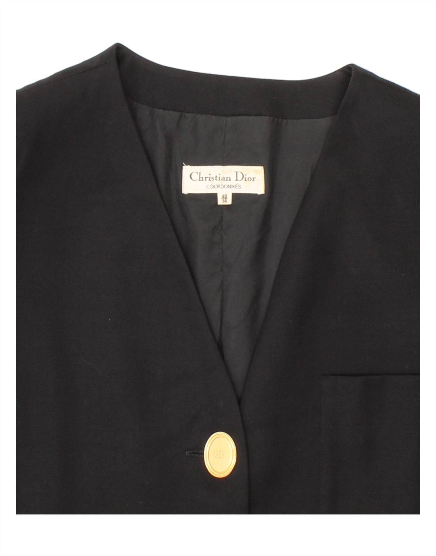 CHRISTIAN DIOR Womens 3 Button Blazer Jacket US 14 XL Black