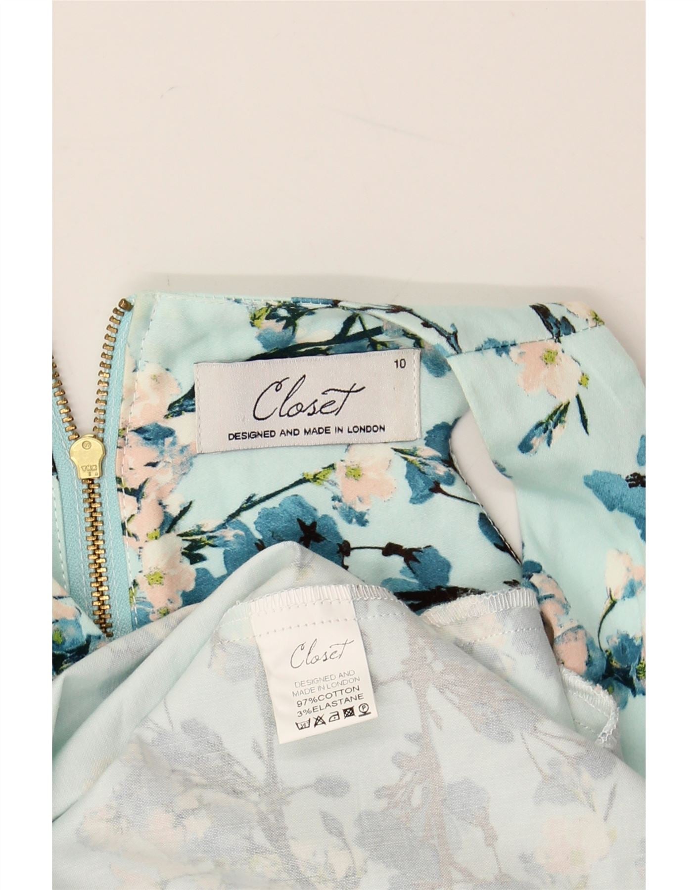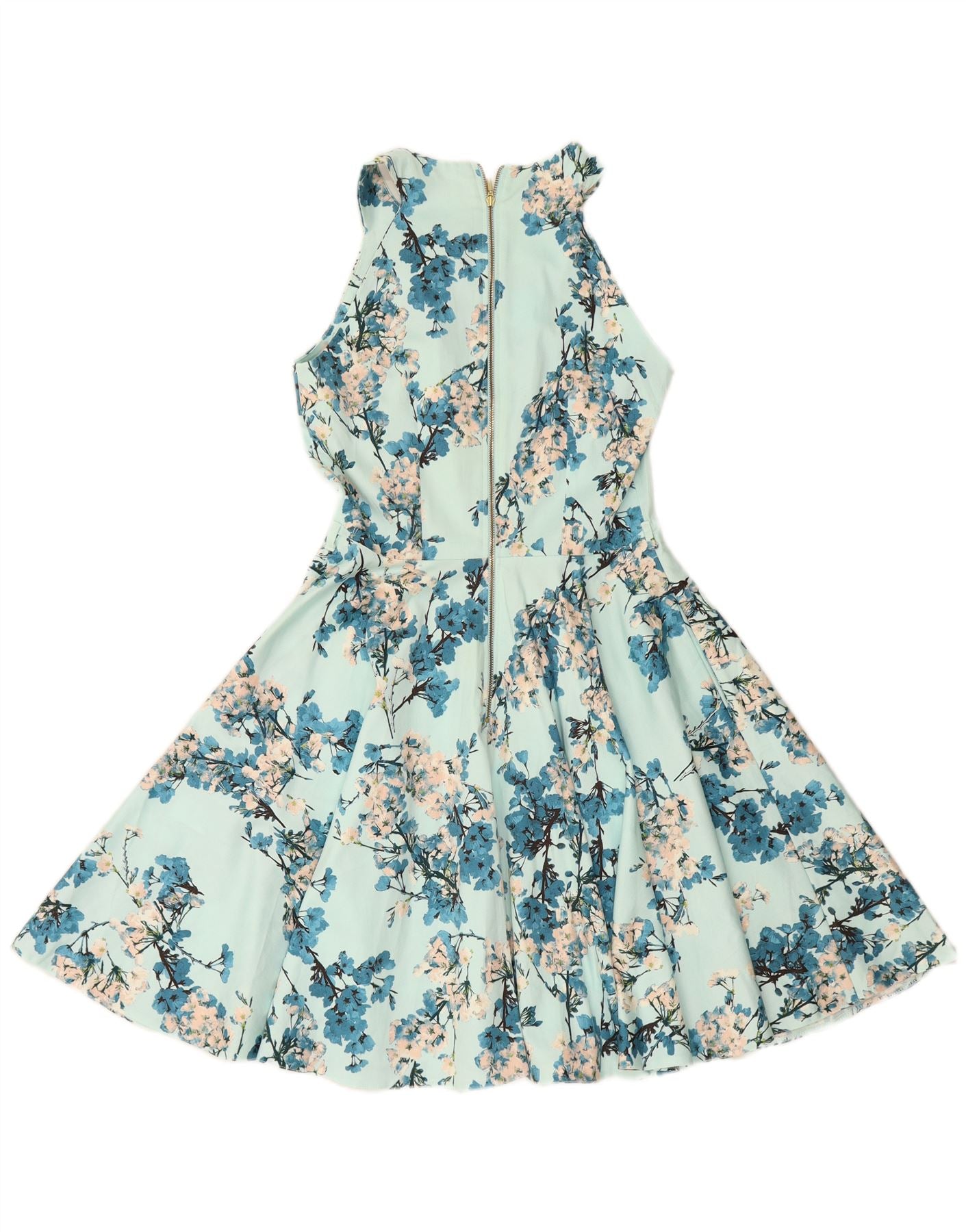 SKAB Kvinders ærmeløs Halter Dress UK 10 Small Blue Floral Cotton