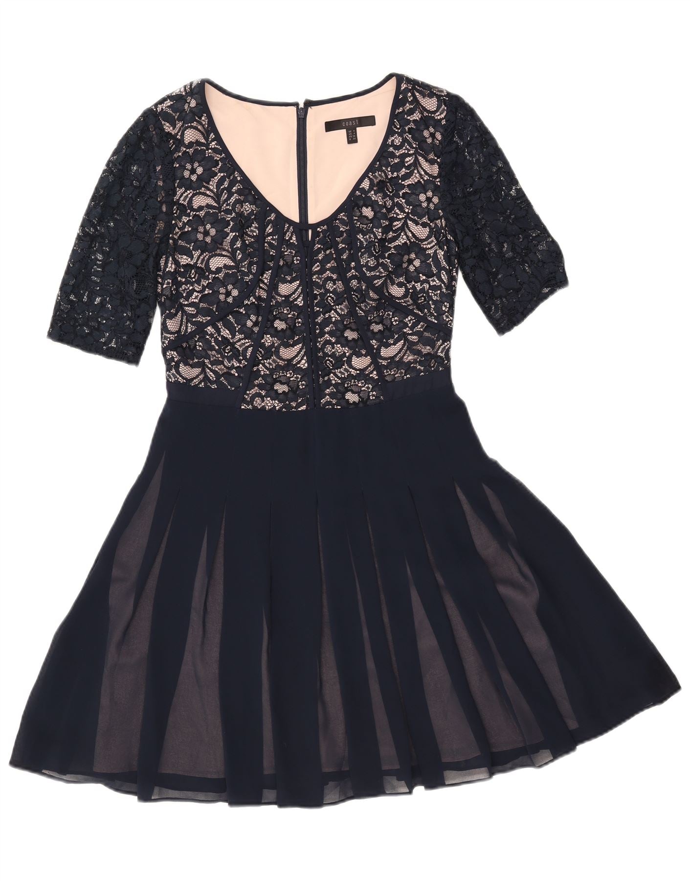 Coast Kvinder Blonde A-Line Kjole UK 8 Small Navy Blue Polyamid