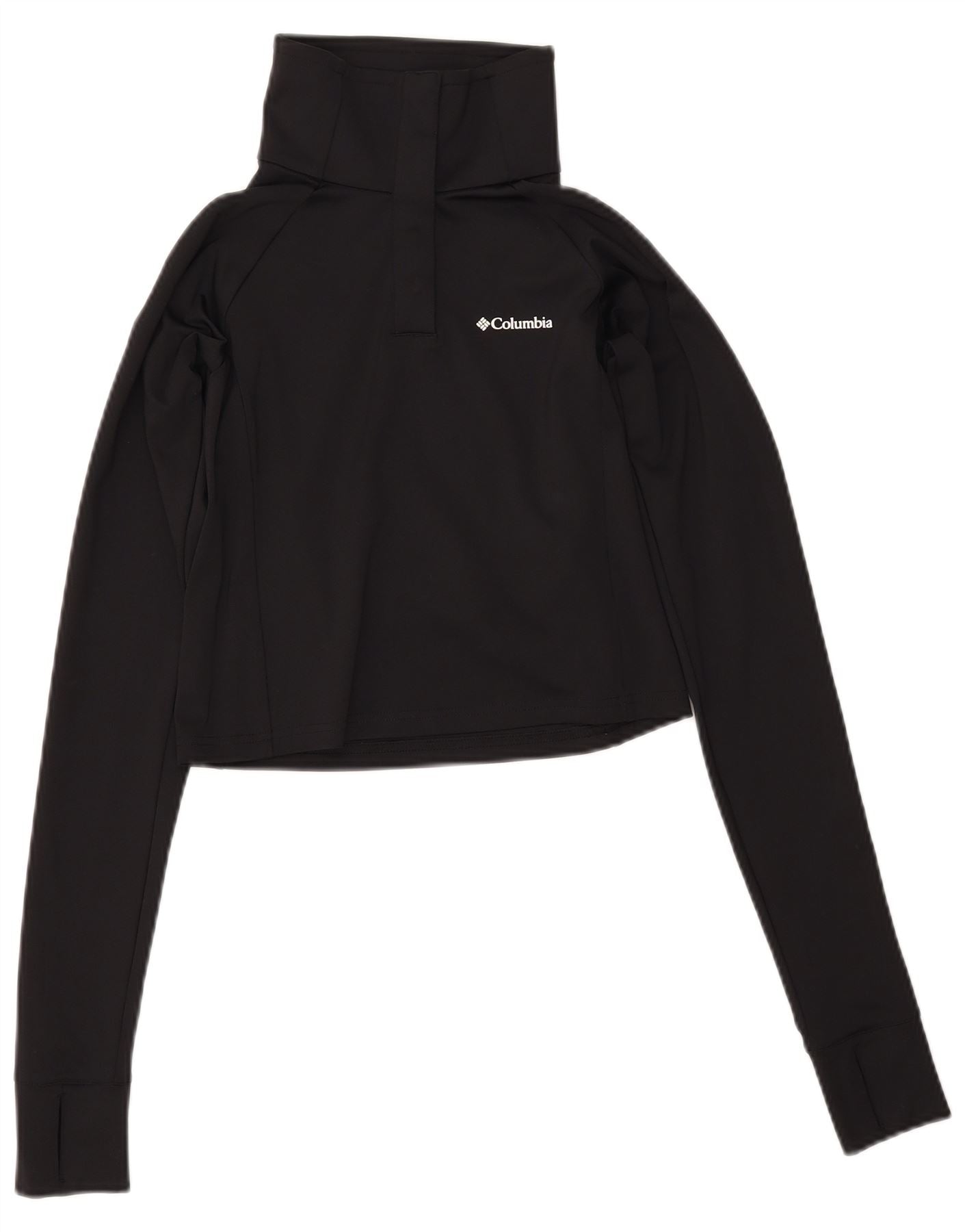 COLUMBIA Womens Crop Button Neck Pullover Træningsdragt Top UK 12 Medium Black