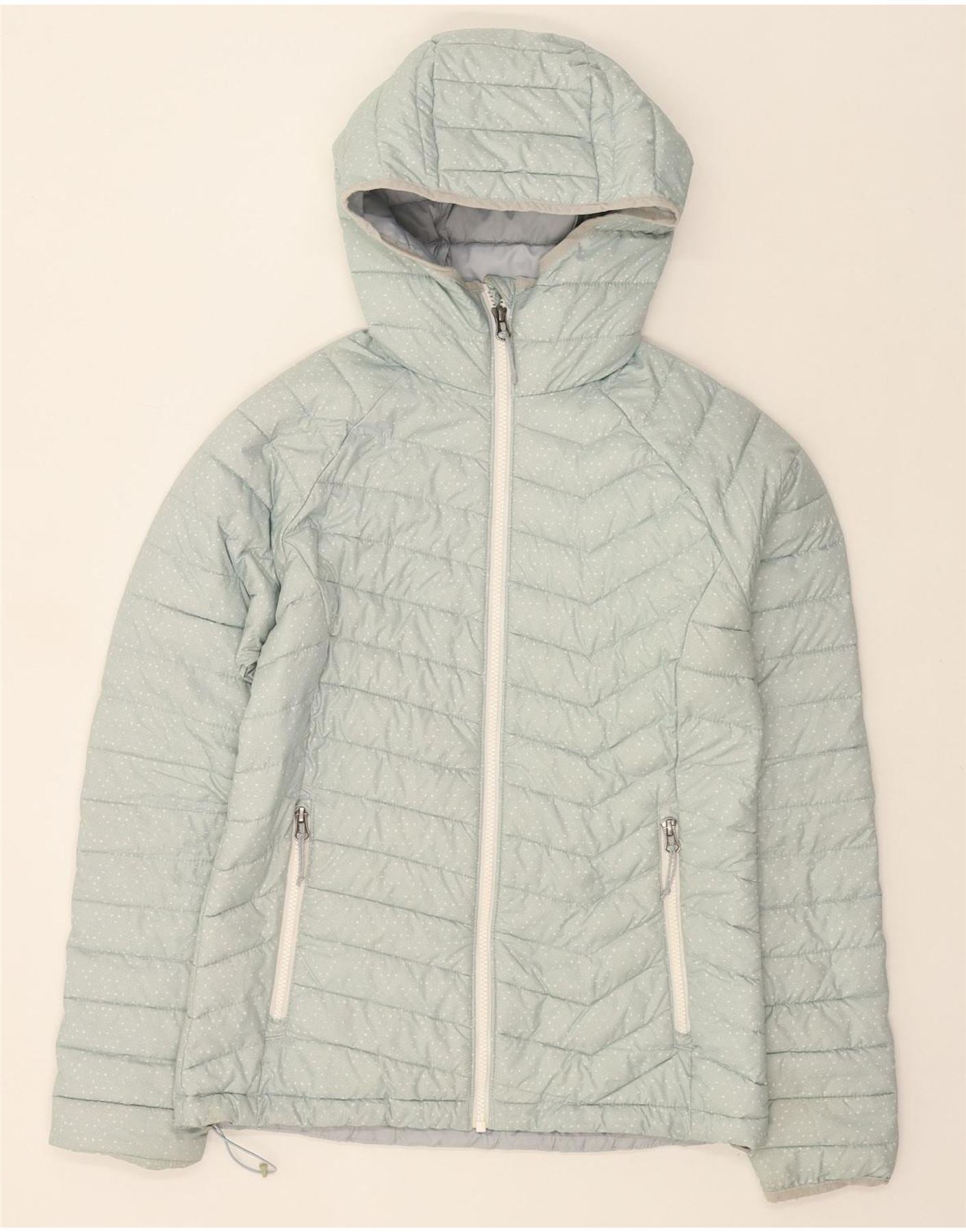 COLUMBIA Womens Hooded Padded Jacket UK 10 Small Blue Spotted Polyester