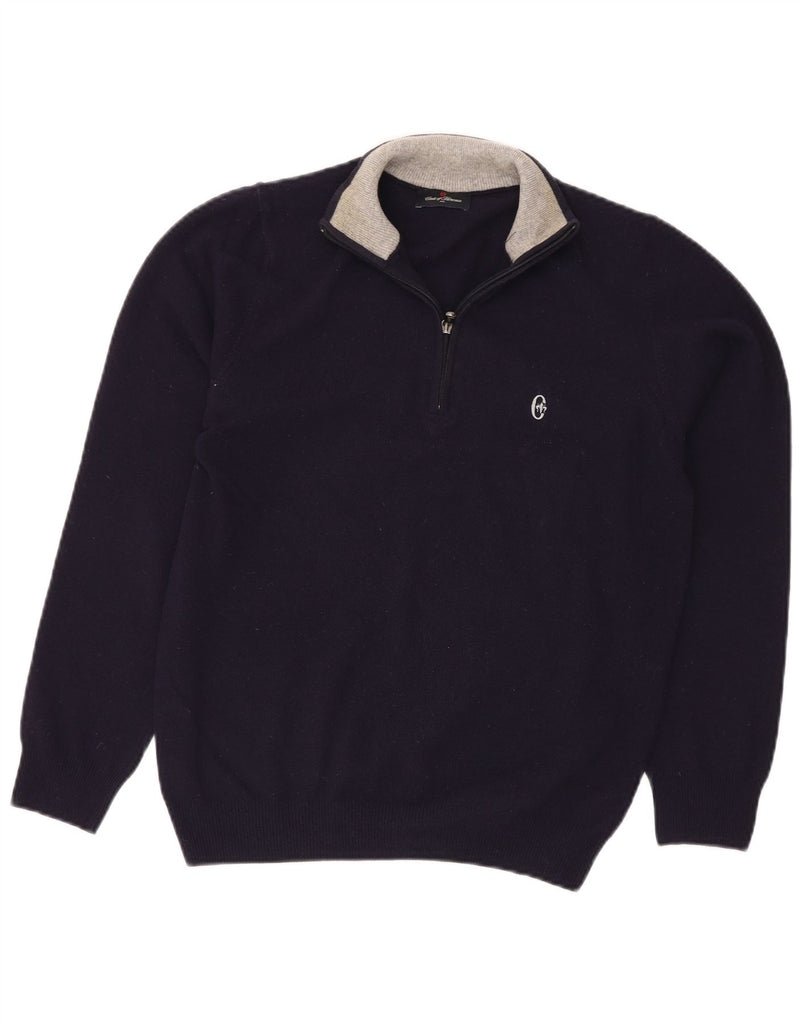 CONTE OF FLORENCE Herre sweater med lynlåshals lille marineblå uld